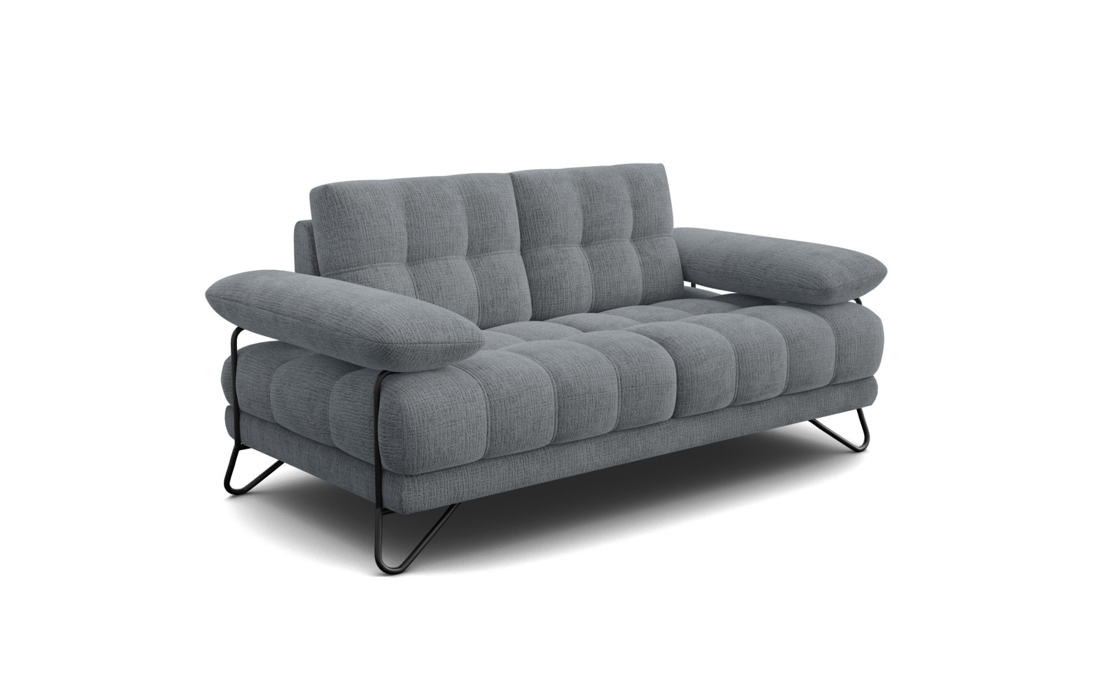 BUBBARA 2-Sitzer-Sofa, dunkelgrau - Beschreibung:Bringen Sie urbane Exklusivität in Ihre vier Wände mit dem BUBBARA 2-Sitzer-Sofa, dunkelgrau. Dieses faszinierende Möbelstück verkörpert eine souveräne Eleganz, die sofort beeindruckt. Der tiefe, satte Grauton strahlt eine unerschütterliche Ruhe aus und bildet die perfekte Basis für ein stilvolles, modernes Interieur. Es ist ein Sofa, das Präsenz zeigt, ohne sich in den Vordergrund zu drängen, und dabei eine Atmosphäre von exquisitem Luxus und purer Entspannung schafft. Die Kombination aus dunkler Farbe und weicher Formensprache macht es zu einem zeitlosen Klassiker. Der Bezug aus hochwertigem Chenille-Stoff ist ein haptisches Meisterwerk. Er fühlt sich außergewöhnlich weich und flauschig an, fast wie eine sanfte Umarmung. Die markante Textur des Stoffes fängt das Licht auf interessante Weise ein und verleiht dem Dunkelgrau eine lebendige, fast dreidimensionale Wirkung. Dieser Stoff ist nicht nur ein Genuss für die Sinne, sondern auch äußerst pflegeleicht und robust, was ihn zum idealen Begleiter im täglichen Leben macht. Das außergewöhnliche Design des BUBBARA 2-Sitzer-Sofa, dunkelgrauWas das BUBBARA 2-Sitzer-Sofa, dunkelgrau so unvergleichlich macht, ist die detaillierte Gestaltung der Oberfläche. Die Sitzfläche und die Rückenlehne sind mit einer präzisen, geometrischen Steppung versehen, die eine rhythmische Unterteilung schafft. Dieses Muster verleiht dem Sofa eine fast skulpturale Anmutung und unterstreicht den hohen Designanspruch der Bubbara-Serie. Es ist ein Spiel mit Licht und Schatten, das die Blicke auf sich zieht. Ein weiteres charakteristisches Merkmal sind die extravaganten Beine. Gefertigt aus schwarzem Metall und geformt wie kunstvolle Schleifen, verleihen sie dem Sofa einen Hauch von industriellem Chic. Sie bilden einen spannenden Kontrast zum voluminösen Polsterkörper und lassen das Sofa trotz seiner massiven Gemütlichkeit leicht und luftig wirken. Diese Details machen das Möbelstück zu einem echten Kunstwerk im Raum. Die Armlehnen sind bewusst massiv gestaltet und etwas höher angesetzt, sodass sie leicht über den eigentlichen Korpus hinausragen. Dies sorgt nicht nur für eine markante Optik, sondern bietet auch einen wunderbaren Komfort, wenn man sich seitlich anlehnen möchte. Hier können Sie sich fallen lassen und den Stress des Alltags vergessen. Warum dieses Chenille Sofa Ihr neuer Lieblingsplatz wirdKomfort wird bei diesem Modell großgeschrieben. Die Sitzhöhe und Sitztiefe sind so gewählt, dass sie ergonomisch optimal unterstützen und gleichzeitig ein entspanntes Lounge-Gefühl vermitteln. Die Polsterung ist angenehm fest und doch weich genug, um traumhafte Stunden darauf zu verbringen, sei es beim Lesen, Fernsehen oder bei guten Gesprächen mit Freunden. Dank seiner kompakten Breite von 185 cm passt das Sofa hervorragend auch in kleinere Wohnzimmer oder Gästezimmer, ohne den Raum zu dominieren. Gleichzeitig bietet es genügend Platz für zwei Personen, um sich bequem auszubreiten. Die dunkle Farbe ist zudem sehr dankbar und verzeiht kleine Missgeschicke im Alltag, was besonders in Haushalten mit Kindern oder Haustieren von Vorteil ist. Zusammenfassend ist dieses Sofa eine Investition in Stil und Wohlbefinden. Es verbindet modernes Design mit traditioneller Gemütlichkeit auf eine Art und Weise, die einfach begeistert. Ein Möbelstück, das Charakter und Klasse beweist. |