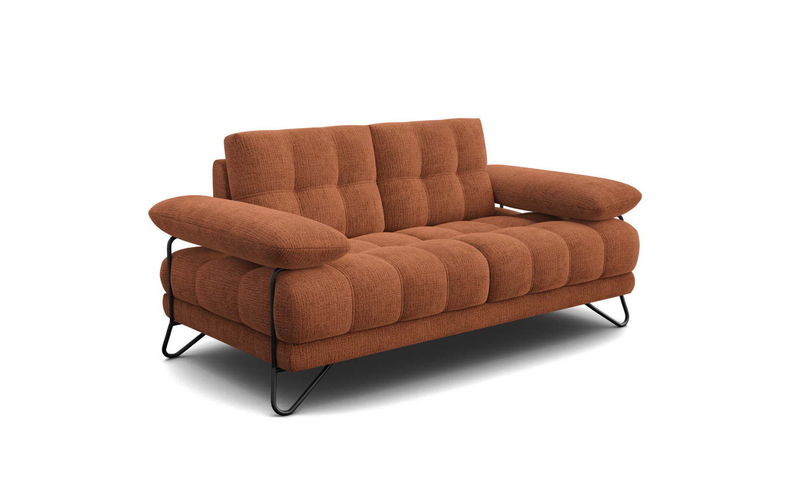 BUBBARA 2-Sitzer-Sofa, rostrot - Beschreibung:Setzen Sie ein mutiges Statement voller Leidenschaft und Wärme mit dem BUBBARA 2-Sitzer-Sofa, rostrot. Dieses außergewöhnliche Möbelstück ist der Inbegriff von lebendigem Design und gemütlicher Ausstrahlung. Der Farbton Rostrot erinnert an herbstliches Laub oder gebrannte Erde und bringt sofort eine wohlige, einladende Atmosphäre in jeden Raum. Es ist kein Möbelstück für Langweiler, sondern für Menschen, die ihren Wohnraum mit Energie und Stil füllen möchten. Das Sofa wirkt wie ein Herzstück, das die Blicke magisch anzieht und pure Entspannung verspricht. Der verwendete Chenille-Stoff unterstreicht die Wertigkeit dieses Sofas auf beeindruckende Weise. Er ist unvergleichlich weich, flauschig und bietet ein haptisches Erlebnis der Sonderklasse. Die klare Textur des Gewebes gibt der intensiven Farbe eine zusätzliche Tiefe und verhindert, dass sie zu flächig wirkt. Es ist ein Stoff zum Anfassen, der Wärme speichert und Geborgenheit vermittelt – ein wahrer Genuss für die Sinne an kühlen Abenden. Warum das BUBBARA 2-Sitzer-Sofa, rostrot ein Highlight für Ihr Interieur istDas Design des BUBBARA 2-Sitzer-Sofa, rostrot ist geprägt von einer rhythmischen Steppung, die Sitzfläche und Rückenlehne in geometrische Segmente unterteilt. Diese Struktur verleiht dem Sofa eine moderne Dynamik und bricht die großen Flächen optisch auf. Es entsteht ein spannendes Wechselspiel, das dem Möbelstück seinen unverwechselbaren Charakter verleiht. In Kombination mit der auffälligen Farbe entsteht ein Designobjekt, das Modernität und Retro-Charme gekonnt vereint. Einen genialen Kontrast zur warmen Polsterung bilden die schwarzen, metallenen Beine. Ihre ungewöhnliche Schleifenform ist ein direkter Verweis auf den angesagten Industrial-Stil und verleiht dem Sofa eine fast schwebende Leichtigkeit. Sie sind nicht nur stabil, sondern auch ein ästhetisches Element, das die Blicke auf den Boden lenkt und die Gesamterscheinung abrundet. Die Kombination aus Rot und Schwarz wirkt dabei besonders edel und dramatisch. Die Armlehnen sind ein weiteres Merkmal, das Beachtung verdient. Sie sind massiv, hoch angesetzt und ragen leicht über den Korpus hinaus. Dies gibt dem Nutzer ein Gefühl von Schutz und Umarmung. Gleichzeitig bieten sie die perfekte Ablage für Arme oder den Kopf, wenn man sich einmal quer auf das Sofa legen möchte. Komfort und Stil vereint im BUBBARA Design SofaNeben der spektakulären Optik bietet dieses Sofa auch einen traumhaften Sitzkomfort. Die Polsterung ist so abgestimmt, dass man weder zu hart noch zu weich sitzt, sondern genau richtig unterstützt wird. Die Sitztiefe von 59 cm lädt zum entspannten Zurücklehnen ein, während die Sitzhöhe von 47 cm das Aufstehen erleichtert. Es ist ein Ort, an dem man gerne Zeit verbringt. Ob als Farbtupfer in einem ansonsten schlichten Raum oder als Teil eines farbenfrohen Konzepts – dieses Sofa passt sich an und bleibt doch eigenständig. Es beweist, dass Mut zur Farbe belohnt wird. Die hochwertige Verarbeitung und die langlebigen Materialien sorgen dafür, dass die Freude an diesem Stück lange währt. Gönnen Sie sich dieses Stück Extravaganz und machen Sie Ihr Wohnzimmer zu einem Ort, der Ihre Persönlichkeit widerspiegelt. Das BUBBARA Sofa in Rostrot ist mehr als nur ein Sitzmöbel, es ist Lebensfreude pur. |