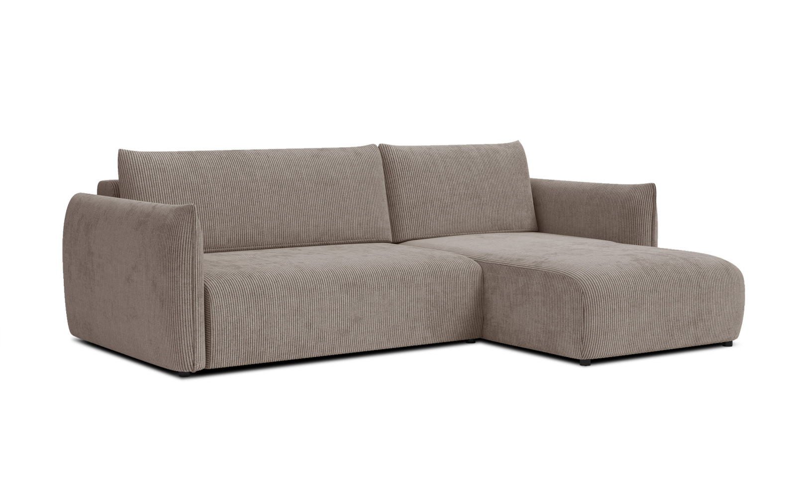 Maße: 248 x 84 x 173 cm, 91 kg. Sitzhöhe: 44 cm, Sitztiefe: 62 cm.Anzahl der Pakete: 2 St. 150x90x120 cm, 110x90x180 cm. Erfordert Montage.Die Füße: 4 cm, schwarz.Stoff: Cordstoff mit 1 cm breiten Streifen. Weicher und flauschiger Stoff mit samtigem Flor, sehr angenehm anzufassen. Je nach Florrichtung verändert sich der Farbton. 100% Polyester, 350 g/m2, 35.000 Martindale’ pilling resistance: 5, lightfastness: 4-5, taupe.Memory-Schaum. Das Sofa hat eine 50kg/m3 V-Memory-Schaumschicht, die sich unter dem Einfluss seiner Hitze und seines Drucks an die Form des Körpers anpasst und ein einzigartiges Gefühl von Umhüllung und Halt vermittelt. Es reduziert Druckstellen, was den Komfort erhöht und Menschen mit Rücken- oder Rückenschmerzen Linderung verschaffen kann.