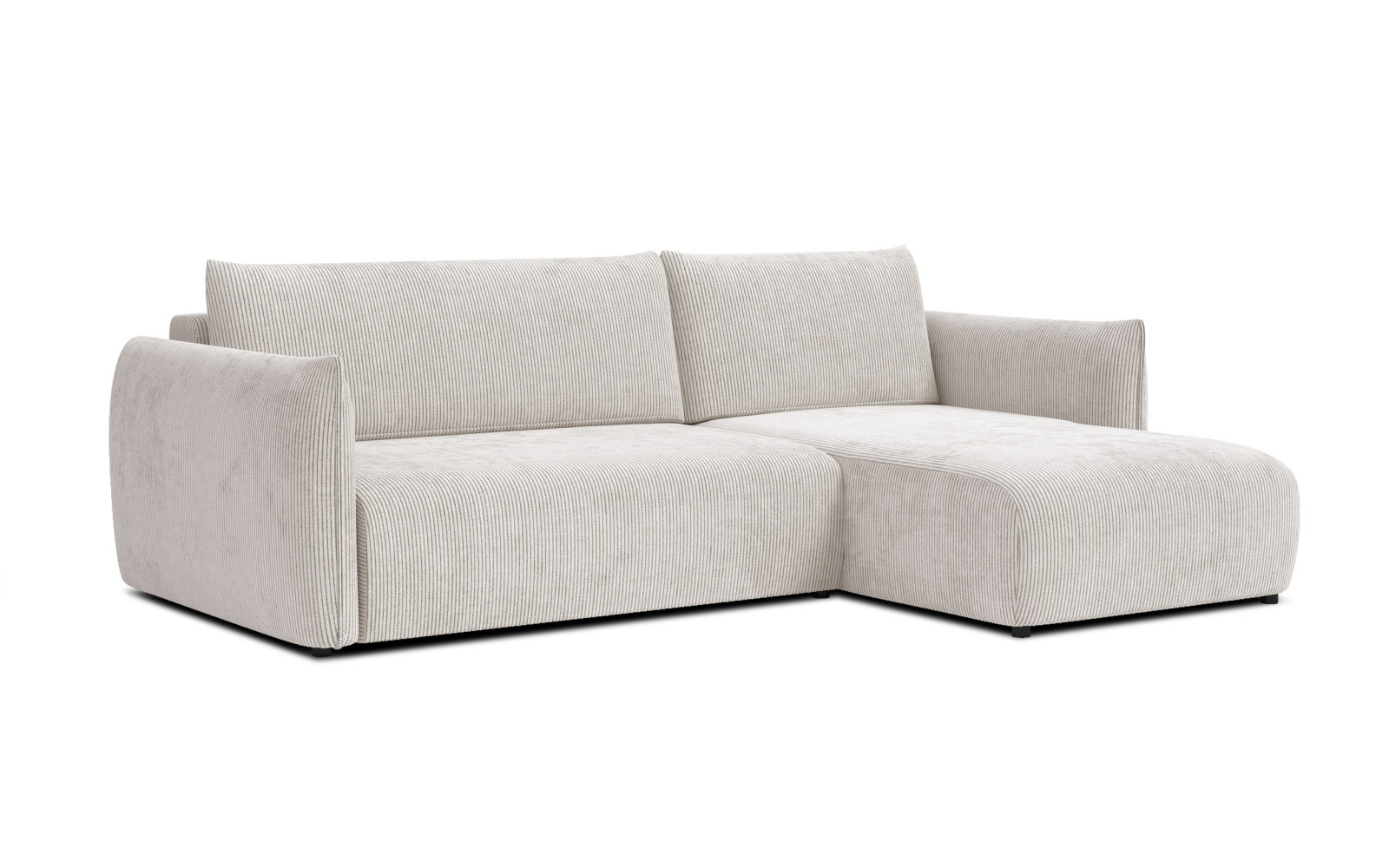 Maße: 248 x 84 x 173 cm, 91 kg. Sitzhöhe: 44 cm, Sitztiefe: 62 cm.Anzahl der Pakete: 2 St. 150x90x120 cm, 110x90x180 cm. Erfordert Montage.Die Füße: 4 cm, schwarz.Stoff: Cordstoff mit 1 cm breiten Streifen. Weicher und flauschiger Stoff mit samtigem Flor, sehr angenehm anzufassen. Je nach Florrichtung verändert sich der Farbton. 100% Polyester, 350 g/m2, 35.000 Martindale’ pilling resistance: 5, lightfastness: 4-5, perlweiß.Memory-Schaum. Das Sofa hat eine 50kg/m3 V-Memory-Schaumschicht, die sich unter dem Einfluss seiner Hitze und seines Drucks an die Form des Körpers anpasst und ein einzigartiges Gefühl von Umhüllung und Halt vermittelt. Es reduziert Druckstellen, was den Komfort erhöht und Menschen mit Rücken- oder Rückenschmerzen Linderung verschaffen kann.
