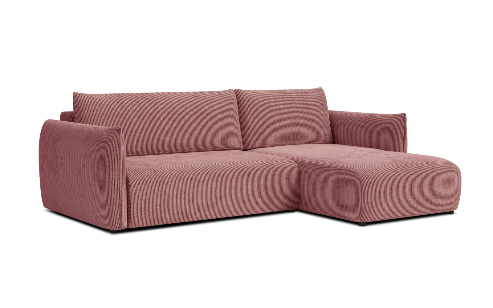 Maße: 248 x 84 x 173 cm, 91 kg. Sitzhöhe: 44 cm, Sitztiefe: 62 cm.Anzahl der Pakete: 2 St. 150x90x120 cm, 110x90x180 cm. Erfordert Montage.Die Füße: 4 cm, schwarz.Stoff: Cordstoff mit 1 cm breiten Streifen. Weicher und flauschiger Stoff mit samtigem Flor, sehr angenehm anzufassen. Je nach Florrichtung verändert sich der Farbton. 100% Polyester, 350 g/m2, 35.000 Martindale’ pilling resistance: 5, lightfastness: 4-5, altrosa.Memory-Schaum. Das Sofa hat eine 50kg/m3 V-Memory-Schaumschicht, die sich unter dem Einfluss seiner Hitze und seines Drucks an die Form des Körpers anpasst und ein einzigartiges Gefühl von Umhüllung und Halt vermittelt. Es reduziert Druckstellen, was den Komfort erhöht und Menschen mit Rücken- oder Rückenschmerzen Linderung verschaffen kann.