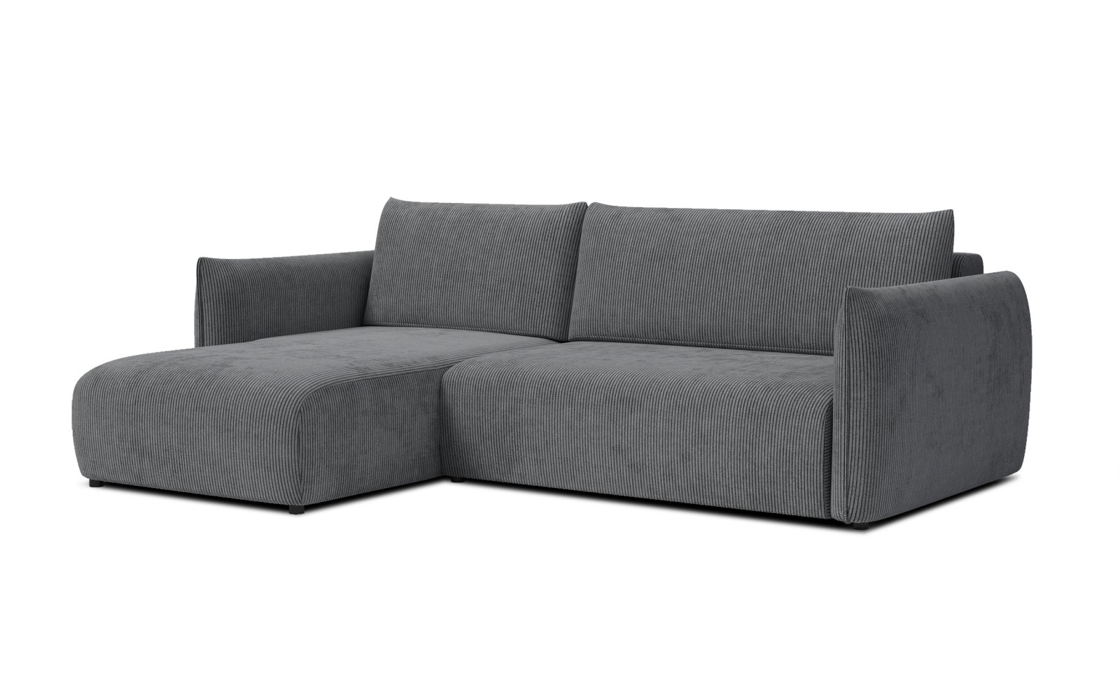 Maße: 248 x 84 x 173 cm, 91 kg. Sitzhöhe: 44 cm, Sitztiefe: 62 cm.Anzahl der Pakete: 2 St. 150x90x120 cm, 110x90x180 cm. Erfordert Montage.Die Füße: 4 cm, schwarz.Stoff: Cordstoff mit 1 cm breiten Streifen. Weicher und flauschiger Stoff mit samtigem Flor, sehr angenehm anzufassen. Je nach Florrichtung verändert sich der Farbton. 100% Polyester, 350 g/m2, 35.000 Martindale’ pilling resistance: 5, lightfastness: 4-5, dunkelgrau.Memory-Schaum. Das Sofa hat eine 50kg/m3 V-Memory-Schaumschicht, die sich unter dem Einfluss seiner Hitze und seines Drucks an die Form des Körpers anpasst und ein einzigartiges Gefühl von Umhüllung und Halt vermittelt. Es reduziert Druckstellen, was den Komfort erhöht und Menschen mit Rücken- oder Rückenschmerzen Linderung verschaffen kann.