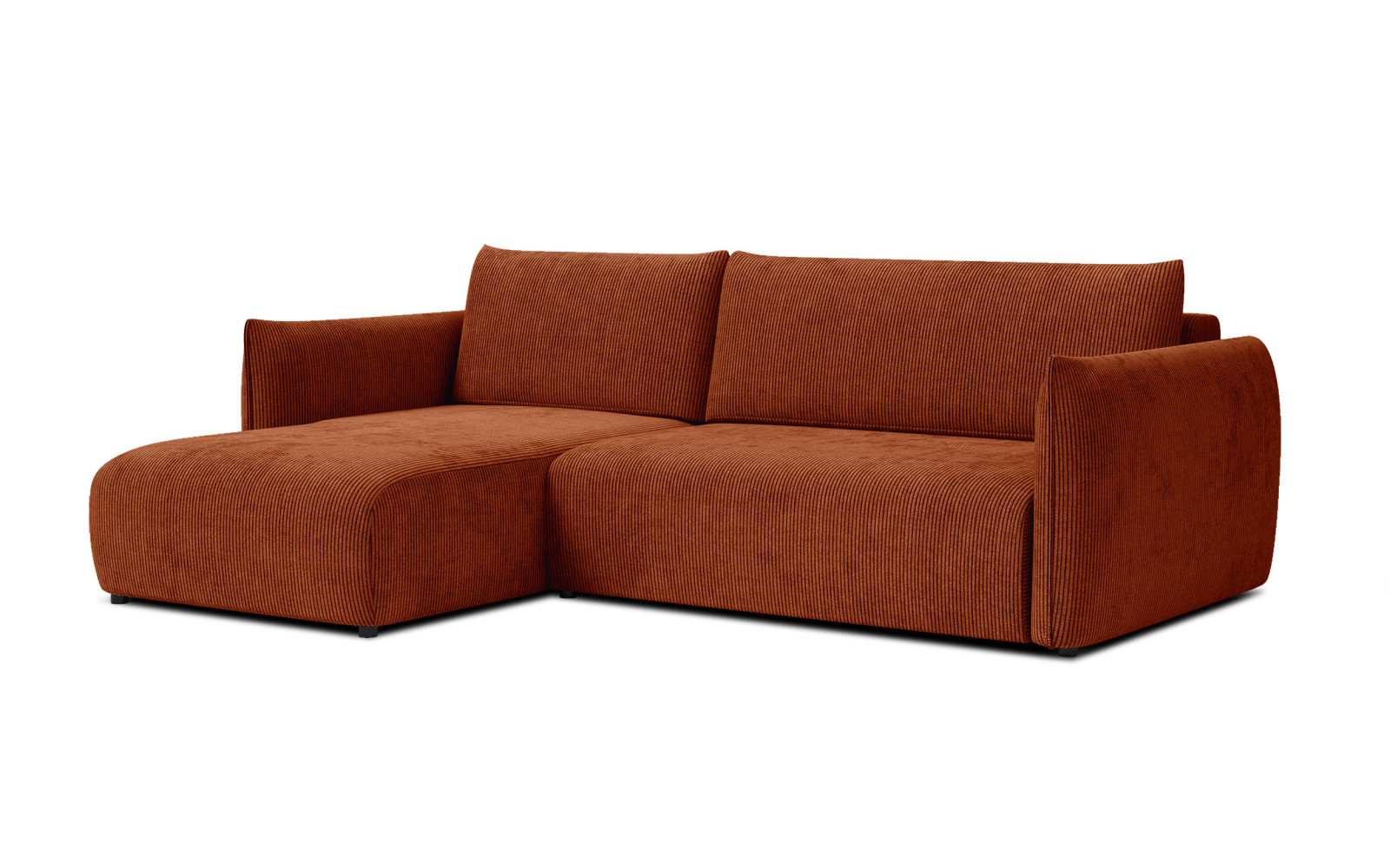 Maße: 248 x 84 x 173 cm, 91 kg. Sitzhöhe: 44 cm, Sitztiefe: 62 cm.Anzahl der Pakete: 2 St. 150x90x120 cm, 110x90x180 cm. Erfordert Montage.Die Füße: 4 cm, schwarz.Stoff: Cordstoff mit 1 cm breiten Streifen. Weicher und flauschiger Stoff mit samtigem Flor, sehr angenehm anzufassen. Je nach Florrichtung verändert sich der Farbton. 100% Polyester, 350 g/m2, 35.000 Martindale’ pilling resistance: 5, lightfastness: 4-5, orange.Memory-Schaum. Das Sofa hat eine 50kg/m3 V-Memory-Schaumschicht, die sich unter dem Einfluss seiner Hitze und seines Drucks an die Form des Körpers anpasst und ein einzigartiges Gefühl von Umhüllung und Halt vermittelt. Es reduziert Druckstellen, was den Komfort erhöht und Menschen mit Rücken- oder Rückenschmerzen Linderung verschaffen kann.