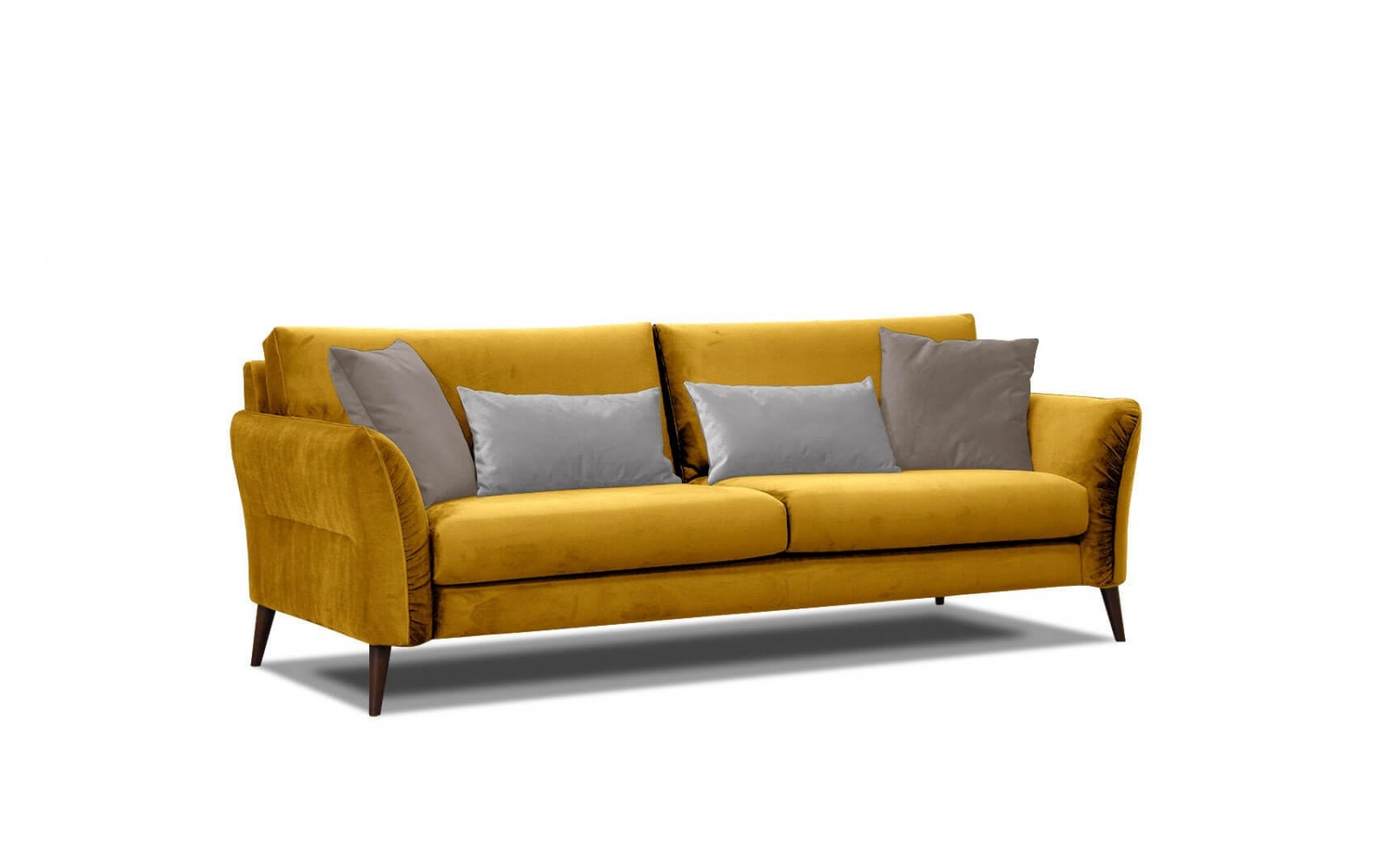 Dieses Sofa ist mehr als nur ein Möbelstück. Es ist ein dekoratives Element, das sofort ins Auge fällt. Es wird zum Mittelpunkt Ihres Raumes, um den sich alle anderen Accessoires harmonisch gruppieren lassen. Dieses Sofa ist in einer großen Auswahl an Farben und glänzenden Stoffen erhältlich. Im Lieferumfang sind vier Zierkissen enthalten, die nicht nur den Sitzkomfort erhöhen, sondern auch als dekoratives Element dienen.