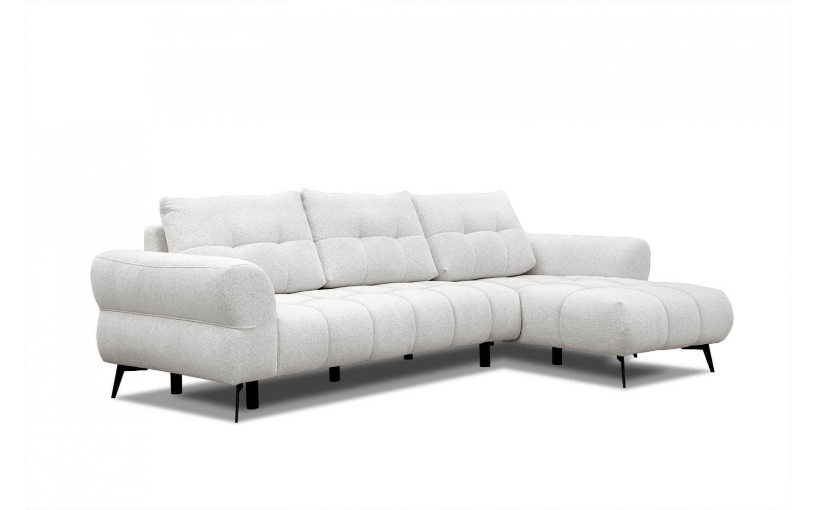 Ecksofa rechts 4-Sitzer SALVINI - Beschreibung:Erleben Sie die zeitlose Eleganz des klassischen 4-Sitzer-Ecksofas Salvini, das Ihrem Wohnraum eine unvergleichliche Note verleiht. Ein herausragendes Merkmal dieses Möbelstücks ist die kunstvoll gesteppten Kissen, die dem Sofa eine anspruchsvolle Raffinesse und einen einzigartigen Charakter verleihen. Die Kombination aus den gesteppten Sitzflächen und schwarzen Metallfüßen strahlt eine stilvolle Klasse und eine elegante Aura aus. Zusätzliche Beine sorgen für die Stabilität und ein sicheres Sitzgefühl. Das Ecksofa hat eine Länge von mehr als 280 cm und bietet großzügig Platz für Ihre Gäste. Trotz seiner beeindruckenden Größe wirkt das Design des Sofas leicht und schlank. Besonders hervorzuheben ist die Chaiselongue, die eine Möglichkeit zum Ausstrecken und Entspannen bietet – perfekt beispielsweise beim Fernsehen. Die Langlebigkeit und Beständigkeit, sind das Ziel der präzisen handwerklichen Verarbeitung. Unser klassisches Ecksofa steht in verschiedenen Farben zur Verfügung und passt sich harmonisch Ihrem Wohnzimmer an. Es ist nicht bloß ein Möbelstück, sondern ein Kunstwerk, das die Quintessenz der zeitlosen Eleganz verkörpert. Verleihen Sie Ihrem Wohnraum mit unserem klassischen 4-Sitzer-Ecksofa Salvini eine zeitlose Note. Ob als Blickfang oder für ein gemütliches Beisammensein mit Familie und Freunden – dieses Möbelstück verbindet Ästhetik, Komfort und Beständigkeit. Mit diesem Ecksofa bringen Sie die zeitlose Eleganz und Stil in Ihr Zuhause. |