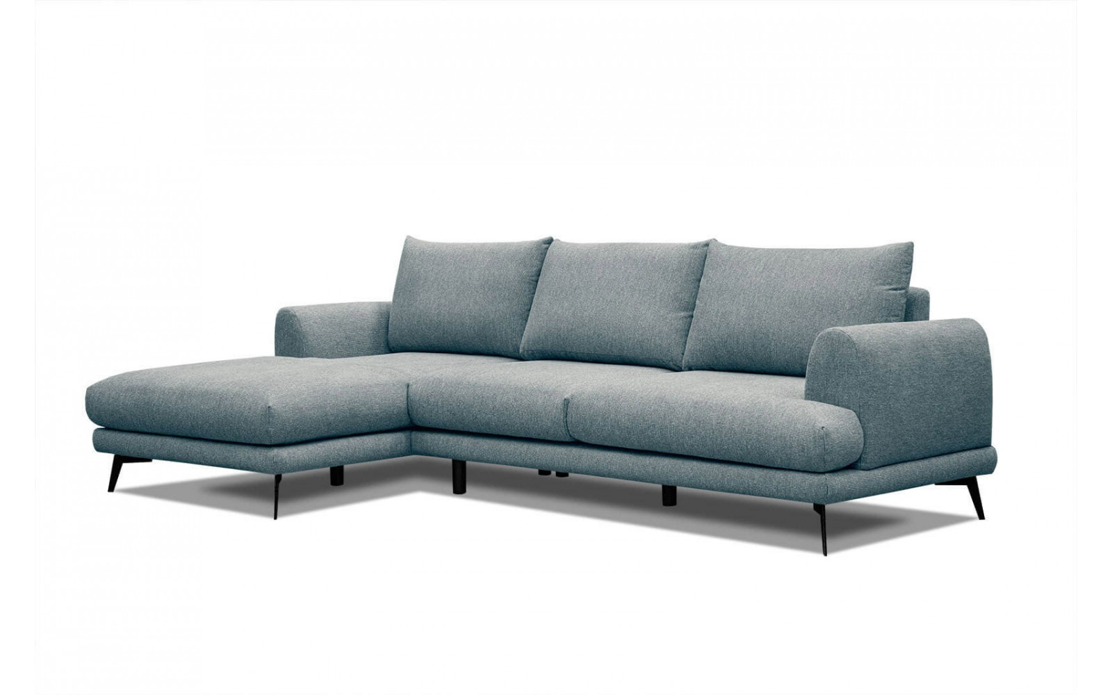 Das 4-Sitzer-Ecksofa Adria verfügt über schwarzen, metallischen Beinen, welche dem Möbelstück einen schwebe Effekt verleihen. Das Ecksofa setzt auf den Komfort und eine benutzerfreundliche Oberfläche, mit angenehmer weicher Polsterung und bequemen Armlehnen. Darüber hinaus ermöglicht die Chaiselongue eine komfortable halb liegende Sitzposition.