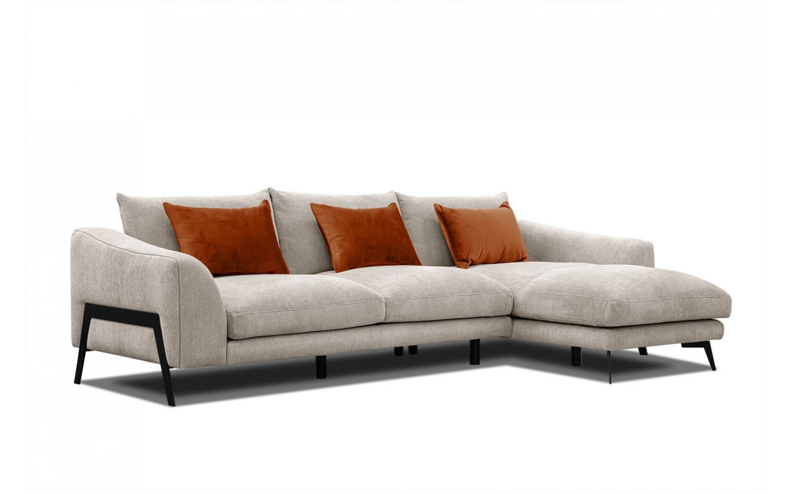 Die großzügige Sitzfläche des Ecksofas gewährleistet ein komfortables und gemütliches Sitzerlebnis. Dieses Möbelstück wird zweifellos den Charakter Ihres Raumes unterstreichen und ihm eine moderne Note verleihen.