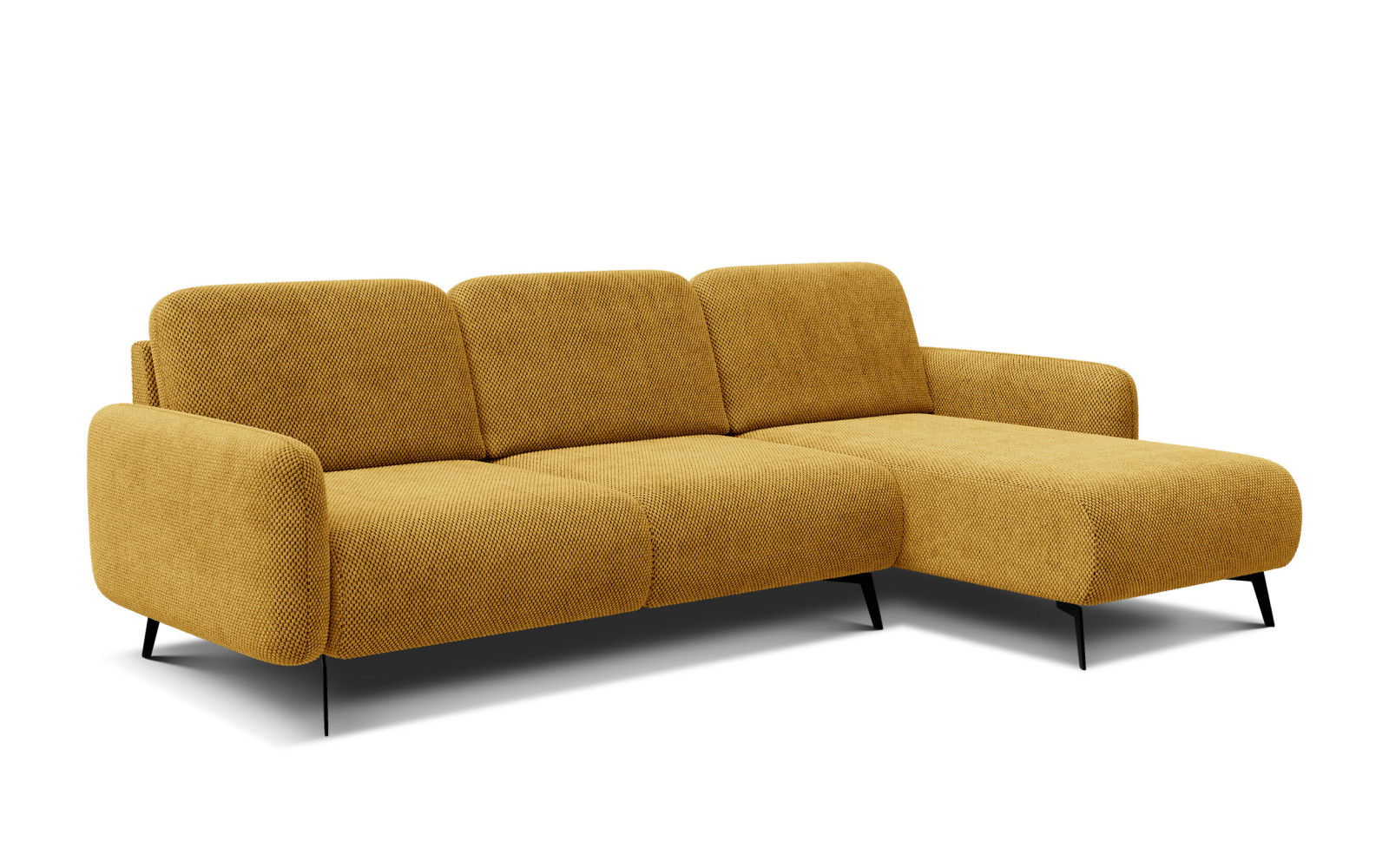Ecksofa 4-Sitzer rechts FEBE, dunkelgelb - Beschreibung:Lassen Sie die Sonne in Ihr Wohnzimmer einziehen mit dem strahlenden Ecksofa 4-Sitzer rechts FEBE, dunkelgelb. Dieses Möbelstück ist ein Garant für gute Laune und stilvolles Ambiente. Der warme Safranton verleiht jedem Raum sofort eine freundliche und einladende Atmosphäre. Gepaart mit dem modernen Design und der hochwertigen Verarbeitung ist dieses Sofa eine exquisite Wahl für alle, die das Besondere lieben und auf Komfort nicht verzichten möchten. Besonders hervorzuheben ist der einzigartige Bezugsstoff mit seiner markanten Waffelstruktur. Die dreidimensionale Webart aus kleinen Quadraten sorgt für eine unvergleichliche Haptik. Der Stoff ist dick, robust und fühlt sich dennoch samtig weich auf der Haut an. Durch die Struktur entsteht ein lebendiges Spiel aus Licht und Schatten, das dem Dunkelgelb eine faszinierende Tiefe verleiht und das Sofa unglaublich wertig erscheinen lässt. Beim Sitzkomfort geht das Ecksofa 4-Sitzer rechts FEBE, dunkelgelb keine Kompromisse ein. Die Sitzfläche ist mit elastischem Polyurethanschaum gepolstert, der für dauerhafte Formstabilität sorgt. Das Highlight ist jedoch die Rückenlehne mit ihrer Füllung aus Silikonfasern. Diese passt sich sanft dem Rücken an und bietet ein Gefühl von purer Entspannung und Geborgenheit. Hier findet man den perfekten Rückzugsort nach einem langen Arbeitstag. Das Ecksofa 4-Sitzer rechts FEBE, dunkelgelb als Highlight im RaumDie Farbe Safrangelb/Dunkelgelb liegt absolut im Trend. Sie wirkt warm, "spicy" und elegant zugleich, ohne dabei zu grell zu sein. In Kombination mit den schlanken, schwarzen Metallfüßen entsteht ein moderner Look, der an den Mid-Century-Stil erinnert, aber zeitgemäß interpretiert wurde. Das Sofa passt wunderbar zu grauen Wänden, dunklen Böden oder als Farbtupfer in ein weißes Interieur. Die Form der FEBE-Serie ist minimalistisch und doch gemütlich. Weiche Rundungen und klare Linien ergänzen sich zu einem harmonischen Gesamtbild. Mit einer Breite von 264 cm und der rechtsseitigen Ottomane bietet das Sofa viel Platz zum Liegen, Sitzen und Relaxen. Es ist der ideale Treffpunkt für die Familie oder um Gäste stilvoll zu empfangen. Trotz seiner strahlenden Farbe ist das Sofa absolut alltagstauglich. Der Stoff aus 100% Polyester ist mit 35.000 Martindale sehr widerstandsfähig gegen Abrieb. Die hohe Lichtechtheit sorgt dafür, dass das schöne Gelb nicht ausbleicht. Zudem ist die Waffelstruktur verzeihend bei kleinen Flecken oder Druckstellen, was das Sofa auch für belebte Haushalte perfekt macht. Lebensfreude und Design im Ecksofa 4-Sitzer rechts FEBE, dunkelgelbDieses Sofa ist mehr als nur ein Sitzmöbel; es ist Ausdruck von Lebensfreude und Designverständnis. Es beweist, dass Komfort und eine aufregende Optik Hand in Hand gehen können. Die hohen Füße lassen das Sofa leicht wirken und sorgen für eine offene Raumwirkung, selbst in kleineren Wohnzimmern. Die haptische Erfahrung des Strukturstoffs in Kombination mit der weichen Polsterung macht jeden Moment auf diesem Sofa zu einem Genuss für die Sinne. Es ist ein Möbelstück, das man gerne berührt und auf dem man gerne Zeit verbringt. Zusammenfassend ist das Ecksofa 4-Sitzer rechts FEBE, dunkelgelb eine Investition in ein schöneres Zuhause. Es bringt Wärme, Stil und außergewöhnlichen Komfort in Ihr Leben. Ein echtes Traumsofa für alle, die Farbe bekennen und dabei höchsten Anspruch an Qualität und Ästhetik haben. |