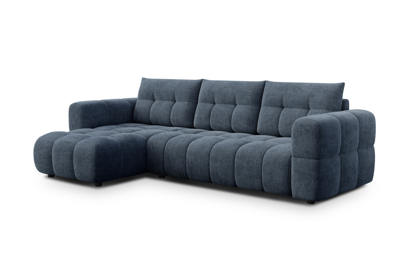 CLOUDI Ecksofa 4-Sitzer links, marineblau - Beschreibung:Tauchen Sie ein in eine Welt der tiefen Entspannung mit dem CLOUDI Ecksofa 4-Sitzer links, marineblau. Dieses imposante Möbelstück bringt die majestätische Ruhe des Ozeans direkt in Ihr Wohnzimmer. Der intensive Marineblau-Ton ist ein echtes Statement für stilbewusstes Wohnen und verleiht jedem Raum eine Aura von Luxus und geheimnisvoller Tiefe. Es ist nicht einfach nur eine Sitzgelegenheit, sondern eine traumhafte Wohnlandschaft, die durch ihre weiche, fast wolkenartige Anmutung sofort zum Verweilen einlädt und den Alltag vergessen lässt. Die Formsprache der CLOUDI-Serie ist modern und organisch zugleich. Abgerundete Kanten und eine fließende Silhouette sorgen dafür, dass das Sofa trotz seiner Größe sanft und harmonisch wirkt. Es fügt sich perfekt in zeitgenössische Interieurs ein, bildet aber auch einen spannenden Kontrast in klassischeren Umgebungen. Die schwarzen Füße sind dezent zurückgenommen und lassen dem blauen Korpus den vollen optischen Vortritt. Das einzigartige Design des CLOUDI Ecksofa 4-Sitzer links, marineblauWas dieses Sofa so unvergleichlich macht, ist die Liebe zum Detail. Charakteristische, breite Nähte durchziehen die Sitz- und Rückenflächen und erzeugen eine geometrische, rhythmische Struktur. Diese verleiht dem CLOUDI Ecksofa 4-Sitzer links, marineblau eine leichte Modul-Optik, die absolut im Trend liegt. Es sieht aus wie eine Komposition aus weichen Kissen, die kunstvoll aneinandergereiht wurden. Der Bezugsstoff ist ein haptisches Erlebnis der Extraklasse. Das verwendete Chenille-Gewebe ist außergewöhnlich weich, flauschig und besitzt eine klare Textur mit einem dezenten Streifenmuster. Wenn Sie mit der Hand darüberstreichen, spüren Sie die samtige Qualität, die ein Genuss für die Sinne ist. Zudem sorgt die Struktur des Stoffes dafür, dass das Marineblau je nach Lichteinfall in feinen Nuancen schimmert und lebendig wirkt. Die Ausrichtung der Ottomane auf der linken Seite (von vorne betrachtet) bietet Ihnen die Möglichkeit, Ihre Raumaufteilung optimal zu nutzen. Ob in einer gemütlichen Ecke oder frei im Raum stehend – dieses Sofa wird immer zum magnetischen Mittelpunkt, der Familie und Gäste anzieht. Himmlischer Komfort auf dem CLOUDI Ecksofa 4-Sitzer links, marineblauDer Name ist hier Programm: Der Sitzkomfort ist darauf ausgelegt, sich wie auf Wolken zu fühlen. Das CLOUDI Ecksofa 4-Sitzer links, marineblau kombiniert Schaumstoffschichten unterschiedlicher Dichte mit einer zusätzlichen Schicht Watte. Diese Konstruktion ermöglicht ein tiefes, weiches Einsinken, ohne dass Sie die Stabilität verlieren. Es ist ein "kontrolliertes Kuscheln", das den Körper perfekt umschließt. Dieser spezielle Aufbau sorgt für pure Entspannung und eine ergonomisch angenehme Unterstützung. Egal, ob Sie aufrecht sitzen oder sich lang ausstrecken, das Sofa passt sich Ihren Bedürfnissen an. Die Langlebigkeit der Materialien garantiert zudem, dass dieser Komfort auch über Jahre hinweg erhalten bleibt. Mit diesem marineblauen Ecksofa holen Sie sich ein Stück exquisite Wohnkultur nach Hause. Es verbindet Design, Haptik und Bequemlichkeit zu einem Gesamtkunstwerk. Lassen Sie sich fallen und genießen Sie Momente der Ruhe in einer Umgebung, die Stil und Wohlbefinden ausstrahlt. |