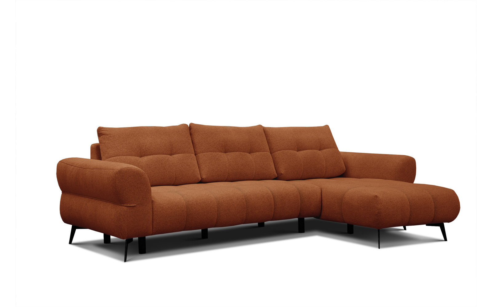 Ecksofa 4-Sitzer SALVINI, orange - Beschreibung:Entdecken Sie eine völlig neue Dimension der Wohnlichkeit mit dem unvergleichlichen Ecksofa 4-Sitzer SALVINI, orange, das Ihrem Zuhause sofort eine warme und einladende Atmosphäre verleiht. Dieses exquisite Polstermöbelstück ist nicht nur ein funktionaler Einrichtungsgegenstand, sondern ein wahres Design-Statement, das Komfort und Ästhetik auf harmonische Weise vereint. Schon beim ersten Anblick besticht das Sofa durch seine großzügigen Proportionen und die lebendige Farbgebung, die jedem Raum eine individuelle Note verleiht. Es ist der ideale Ort, um nach einem langen Tag zur Ruhe zu kommen und pure Entspannung zu genießen. Der Bezugsstoff dieses Modells ist ein wahrer Genuss für die Sinne. Der verwendete Veloursstoff zeichnet sich durch kurze Borsten und eine zarte, heterogene Textur aus, die sich außergewöhnlich weich und angenehm auf der Haut anfühlt. Wenn Sie mit der Hand über die Oberfläche streichen, spüren Sie sofort die hochwertige Verarbeitung und die wohlige Wärme, die das Material ausstrahlt. Ein besonderes Highlight ist der faszinierende Schattierungseffekt, der je nach Lichteinfallswinkel entsteht. Der Stoff schimmert dezent und wechselt nuanciert seinen Farbton, was dem Möbelstück eine dynamische und zugleich edle Ausstrahlung verleiht. Warum das Ecksofa 4-Sitzer SALVINI, orange die perfekte Wahl für Ihr modernes Wohnzimmer istNeben der optischen Raffinesse überzeugt das Ecksofa 4-Sitzer SALVINI, orange auch durch seine durchdachte Konstruktion, die auf Langlebigkeit und Stabilität ausgelegt ist. Die Basis bilden stilvolle, 16 Zentimeter hohe schwarze Füße, die dem massiven Korpus eine überraschende Leichtigkeit verleihen. Dieser moderne Akzent sorgt dafür, dass das große 4-Sitzer Sofa im Raum nicht zu wuchtig wirkt, sondern elegant und fast schwebend erscheint. Zudem erleichtert die Bodenfreiheit die Reinigung unter dem Möbelstück erheblich, was im Alltag ein praktischer Vorteil ist. Der Sitzkomfort ist bei diesem Velours Ecksofa absolut traumhaft. Im Inneren sorgen Schaumstoffe unterschiedlicher Dichte dafür, dass Sie weder zu hart noch zu weich sitzen, sondern genau die richtige Unterstützung finden. Diese ergonomische Polsterung garantiert, dass das Sofa auch nach intensiver Nutzung seine Form behält und Ihnen lange Freude bereitet. Egal ob Sie aufrecht sitzen und lesen oder sich entspannt zurücklehnen möchten, dieses Möbelstück passt sich Ihren Bedürfnissen perfekt an. Mit einer Breite von fast drei Metern bietet dieses Modell ausreichend Platz für die ganze Familie oder für gesellige Abende mit Freunden. Niemand muss sich eingeengt fühlen, denn die Sitztiefe und Sitzhöhe sind so konzipiert, dass sie maximalen Komfort für Personen unterschiedlicher Körpergröße bieten. Es ist ein Ort der Begegnung und der Erholung gleichermaßen. Das einzigartige Design und die Haptik im Ecksofa 4-Sitzer SALVINI, orange erlebenDie Farbe Orange ist mutig und voller Energie, doch in dieser samtigen Ausführung wirkt sie keinesfalls aufdringlich, sondern stilvoll und bereichernd. Sie bringt Licht und Lebensfreude in Ihr Interieur und lässt sich wunderbar mit neutralen Wandfarben oder dunklen Holztönen kombinieren. Das Ecksofa 4-Sitzer SALVINI, orange wird so schnell zum unumstrittenen Mittelpunkt Ihres Wohnbereichs. Die heterogene Textur des Stoffes sorgt zudem dafür, dass das Sofa sehr verzeihend gegenüber kleinen Unregelmäßigkeiten des Alltags ist. Der Velours ist nicht nur schön anzusehen, sondern auch robust genug für das tägliche Leben. Die hohe Abriebfestigkeit und die gute Lichtechtheit sind technische Merkmale, die die Exklusivität dieses Modells unterstreichen, ohne dass man sie auf den ersten Blick sieht – man spürt und erlebt sie einfach. Gönnen Sie sich dieses Stück Luxus für Ihr Zuhause. Es ist mehr als nur eine Sitzgelegenheit; es ist eine Insel der Ruhe in einer hektischen Welt. Die Kombination aus visueller Eleganz, haptischem Vergnügen und solider Bauweise macht dieses große Ecksofa zu einer Investition, die sich jeden Tag aufs Neue auszahlt. Lassen Sie sich von der Qualität und dem Charme dieses Möbelstücks verzaubern. Das Ecksofa 4-Sitzer SALVINI, orange steht bereit, um Ihren Wohnraum in eine Oase des Wohlbefindens zu verwandeln. |