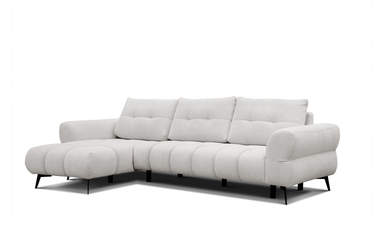Ecksofa 4-Sitzer SALVINI, ecru - Beschreibung:Holen Sie sich pure Eleganz und strahlende Helligkeit in Ihr Zuhause mit dem traumhaften Ecksofa 4-Sitzer SALVINI, ecru. Dieser helle, natürliche Farbton steht für Reinheit, Ruhe und nordische Frische. Er lässt jeden Raum sofort größer, freundlicher und einladender wirken. Dieses Sofa ist mehr als nur ein Sitzmöbel; es ist ein Statement für einen gehobenen Lebensstil, der Wert auf Licht und Leichtigkeit legt. Es fügt sich harmonisch in moderne Wohnkonzepte ein und schafft eine Atmosphäre von unvergleichlicher Gelassenheit. Der Bezug aus exquisitem Veloursstoff macht dieses Möbelstück zu einem echten Genuss für die Sinne. Die Oberfläche mit ihren kurzen Borsten und der zarten, heterogenen Textur fühlt sich außergewöhnlich weich und samtig an. Es ist ein Material, das man gerne berührt und das eine wohlige Wärme ausstrahlt. Ein besonderer Blickfang ist der subtile Schattierungseffekt: Je nach Lichteinfall schimmert der helle Stoff dezent und verleiht dem Sofa eine edle Struktur und Tiefe, die bei flachen Stoffen oft fehlt. Wie das Ecksofa 4-Sitzer SALVINI, ecru Helligkeit und Komfort verbindetKomfort wird beim Ecksofa 4-Sitzer SALVINI, ecru großgeschrieben. Das Innenleben besteht aus Schaumstoffen unterschiedlicher Dichte, die perfekt aufeinander abgestimmt sind, um ein optimales Sitzgefühl zu gewährleisten. Sie sinken sanft ein, werden aber gleichzeitig gut gestützt – die ideale Voraussetzung für pure Entspannung nach einem langen Tag. Diese hochwertige Polsterung sorgt zudem dafür, dass das Sofa seine schöne Form auch bei täglicher Nutzung lange behält. Einen spannenden Kontrast zum hellen Bezug bilden die 16 Zentimeter hohen Füße in Schwarz. Sie verleihen dem großen 4-Sitzer Sofa einen modernen Charakter und sorgen für eine optische Leichtigkeit. Das Sofa scheint fast im Raum zu schweben, was besonders in kleineren Räumen von Vorteil ist, da der Boden sichtbar bleibt. Auch die Reinigung unter dem Sofa wird durch die Bodenfreiheit erheblich erleichtert. Die Farbe Ecru ist ein wunderbarer Allrounder. Sie passt perfekt zum angesagten Skandi-Stil, harmoniert aber auch mit Boho-Elementen oder minimalistischem Design. Sie können das Velours Ecksofa mit Kissen in Erdtönen, Pastellfarben oder kräftigen Kontrasten stylen – es sieht immer fantastisch aus. Es ist eine Leinwand für Ihren persönlichen Geschmack. Die feine Textur und Qualität beim Ecksofa 4-Sitzer SALVINI, ecru erlebenTrotz der hellen Farbe ist der Veloursstoff dank seiner heterogenen Textur und hohen Qualität alltagstauglich. Er ist robust und widerstandsfähig, sodass Sie die Schönheit des Sofas lange genießen können. Die Haptik ist dabei stets angenehm und lädt zum Kuscheln ein. Es ist ein Möbelstück, das nicht nur optisch überzeugt, sondern sich auch gut anfühlt. Das großzügige Platzangebot lädt dazu ein, Zeit mit den Liebsten zu verbringen. Ob gemütlicher Kaffeeklatsch oder entspannter Fernsehabend – hier findet jeder seinen Platz. Die Kombination aus weichem Stoff, bequemer Polsterung und stilvollem Design macht dieses Sofa zu einem Highlight in jedem Wohnzimmer. Investieren Sie in ein Möbelstück, das Ihr Zuhause zum Strahlen bringt. Das Ecksofa 4-Sitzer SALVINI, ecru ist die perfekte Wahl für alle, die es hell, freundlich und luxuriös mögen. Es verspricht Wohlfühlmomente auf höchstem Niveau. Lassen Sie sich von der zarten Schönheit und dem hohen Komfort dieses Sofas verzaubern und schaffen Sie sich Ihre eigene helle Oase. |
