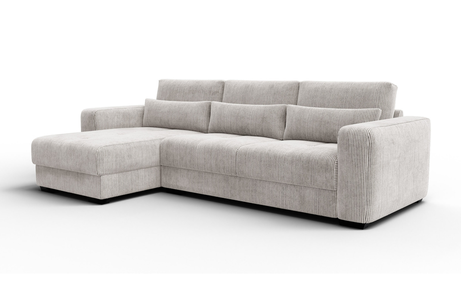 Ecksofa 4-Sitzer links OLI, perlweiß - Beschreibung:Erleben Sie mit dem Ecksofa 4-Sitzer links OLI, perlweiß einen Hauch von purem Luxus in Ihren eigenen vier Wänden. Dieses atemberaubende Möbelstück ist der Inbegriff von Helligkeit und Raffinesse. Der Farbton Perlweiß strahlt eine unvergleichliche Eleganz aus und lässt jeden Raum optisch größer und offener wirken. Es ist ein Sofa für Ästheten, die Wert auf ein exquisites Ambiente legen und dabei keine Kompromisse beim Komfort eingehen möchten. Das Design ist modern, schnörkellos und doch voller Wärme. Der Bezug aus feinem Cordstoff mit seinen charakteristischen Streifen ist ein haptisches Erlebnis der Sonderklasse. Außergewöhnlich weich und samtig im Griff, lädt er dazu ein, mit der Hand darüber zu streichen und die Struktur zu fühlen. Das Licht spielt sanft auf den Erhebungen des Stoffes, was dem perlweißen Ton eine faszinierende Lebendigkeit verleiht. Es ist ein Genuss für die Sinne, sich auf diesem Sofa niederzulassen. Trotz der hellen Farbe ist das Material so gewählt, dass es den Anforderungen des täglichen Lebens standhält, ohne seine luxuriöse Ausstrahlung zu verlieren. Die großzügige Sitzfläche auf der linken Seite bietet viel Platz zum Ausstrecken und Relaxen. Hier finden Sie Ruhe und Entspannung auf höchstem Niveau, eingebettet in weiche Formen und erstklassige Materialien. Warum das Ecksofa 4-Sitzer links OLI, perlweiß Ihre Einrichtung veredeltDas Ecksofa 4-Sitzer links OLI, perlweiß fungiert wie ein strahlender Mittelpunkt in Ihrem Wohnzimmer. Es zieht die Blicke auf sich, ohne aufdringlich zu wirken. Die Farbe Perlweiß lässt sich hervorragend mit dunklen Akzenten, metallischen Accessoires oder naturbelassenem Holz kombinieren, wodurch spannende Kontraste entstehen. Es ist die perfekte Bühne für Ihren individuellen Stil. Die abgerundeten Linien und die massiven Armlehnen unterstreichen den zeitgenössischen Charakter des Möbels. Es wirkt wie eine moderne Skulptur, die jedoch voll und ganz auf Bequemlichkeit ausgerichtet ist. Die hochwertige Verarbeitung sorgt dafür, dass die Nähte und Kanten auch bei intensiver Nutzung perfekt sitzen und das elegante Gesamtbild wahren. Mit diesem Sofa holen Sie sich ein Stück Designgeschichte nach Hause, das Modernität mit klassischer Gemütlichkeit verbindet. Es ist ein Statement für guten Geschmack und den Wunsch nach einem harmonischen, hellen Zuhause, in dem man sich sofort wohlfühlt. Ergonomie und Gemütlichkeit im Ecksofa 4-Sitzer links OLI, perlweißUnter dem traumhaft schönen Bezug des Ecksofa 4-Sitzer links OLI, perlweiß verbirgt sich ein Kern aus hochflexiblem Schaumstoff. Dieser bietet eine mittelfeste Sitzqualität, die als ideal für langes Sitzen und Liegen empfunden wird. Sie sinken sanft ein, werden aber gleichzeitig optimal gestützt, was pure Entspannung für den Rücken bedeutet. Die samtige Oberfläche des Cords sorgt zudem für ein warmes und angenehmes Hautgefühl. Im Gegensatz zu glatten Stoffen bietet die Struktur eine gewisse Griffigkeit, die das Sitzen noch gemütlicher macht. Es ist der perfekte Ort, um nach einem langen Arbeitstag die Seele baumeln zu lassen und neue Energie zu tanken. Dieses Sofa beweist, dass sich helles Design und absolute Alltagstauglichkeit nicht ausschließen müssen. Es ist ein Ort der Zuflucht, der Exklusivität und Komfort auf eine Weise vereint, die Sie jeden Tag aufs Neue begeistern wird. |