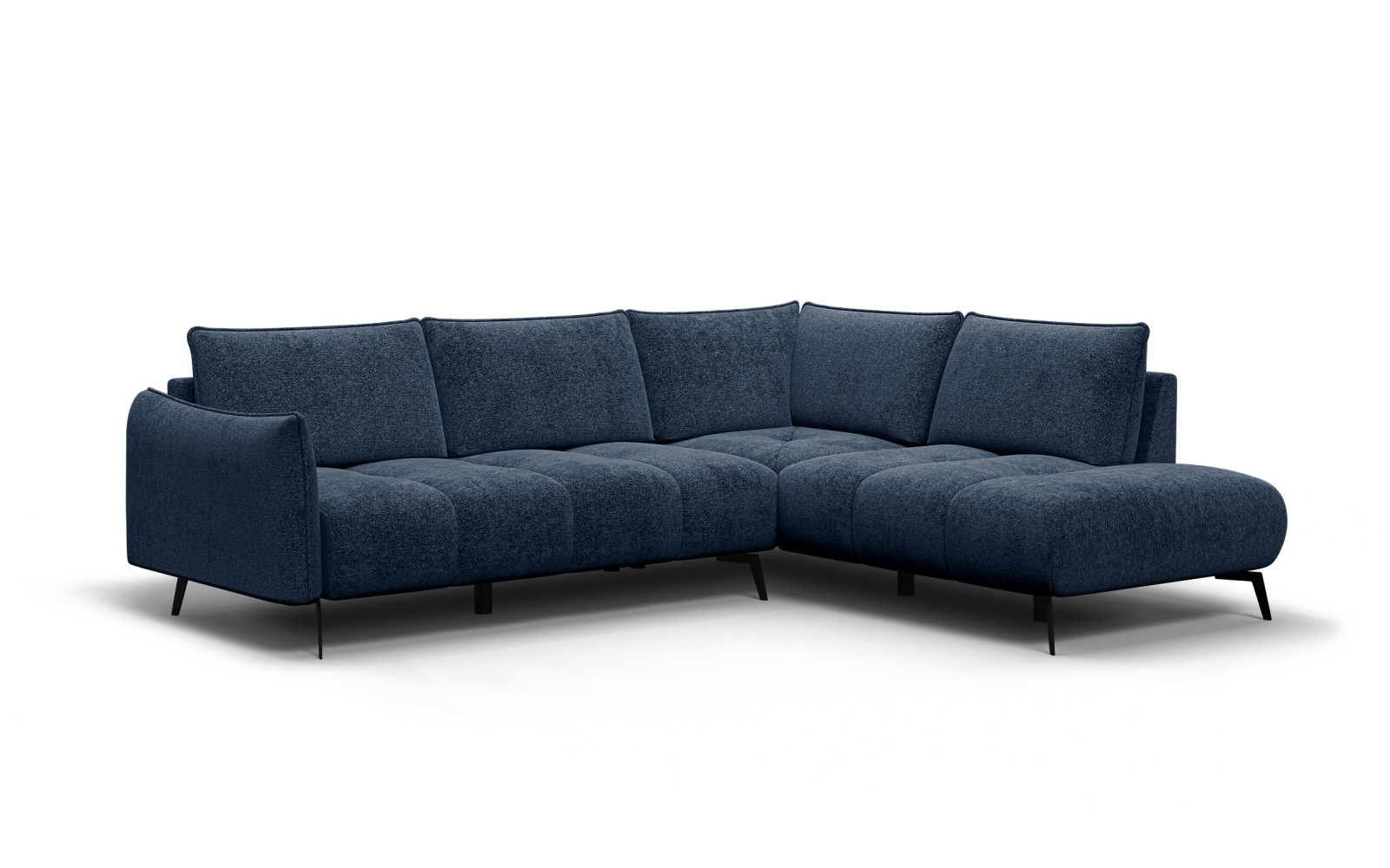 Ecksofa 5-Sitzer rechts AERA, dunkelblau - Beschreibung:Setzen Sie ein kraftvolles und zugleich elegantes Statement mit dem Ecksofa 5-Sitzer rechts AERA, dunkelblau. Diese Farbvariante bringt eine Tiefe und Noblesse in Ihren Wohnraum, die unvergleichlich ist. Das Dunkelblau erinnert an die unergründliche Ruhe des Ozeans oder den nächtlichen Himmel und schafft so eine Atmosphäre von entspannter Souveränität. Der Bezug aus feinem Veloursstoff unterstreicht diesen luxuriösen Charakter perfekt. Mit seinem kurzen Flor und der zarten, ungleichmäßigen Struktur bietet er ein haptisches Erlebnis, das außergewöhnlich weich und samtig ist. Je nach Lichteinfall schimmert das Blau in verschiedenen Facetten, was dem Sofa eine geheimnisvolle und anziehende Aura verleiht. Das Design der Serie AERA bleibt dabei seiner Linie treu: Minimalistisch, klar und modern. Die Kombination aus der intensiven Farbe und der schlichten Formsprache macht dieses Möbelstück zu einem echten Design-Highlight von Weltklasse. Es passt hervorragend in urbane Lofts, aber auch in klassisch eingerichtete Räume, denen es einen modernen Twist verleiht. Die niedrige Rückenlehne sorgt für Offenheit, während die großzügigen Maße der Sitzfläche puren Luxus versprechen. Warum das Ecksofa 5-Sitzer rechts AERA, dunkelblau Ihr Interieur verzaubertBlau ist die Farbe der Ruhe und der Konzentration. Mit diesem Sofa holen Sie sich einen Ruhepol in Ihr Zuhause, der zum Entschleunigen einlädt. Der Kontrast zwischen dem tiefen Blau des Polsters und den schwarzen, filigranen Metallfüßen ist exquisit und zeugt von einem feinen Gespür für Ästhetik. Die 16 Zentimeter hohen Füße lassen das massive Möbelstück leicht und fast schwebend erscheinen, was besonders bei dunklen Farben wichtig ist, um den Raum nicht zu erdrücken. Das Ecksofa 5-Sitzer rechts AERA, dunkelblau ist die perfekte Wahl für alle, die Mut zur Farbe haben, aber dennoch klassisch bleiben wollen. Es ist ein Genuss für die Sinne, die weiche Oberfläche zu spüren und die Farbnuancen zu betrachten. Der "Scandi"-Einfluss ist in der Funktionalität und der reduzierten Form spürbar, während die Farbe einen Hauch von Glamour und "Urban Chic" hinzufügt. Dieses Sofa ist nicht nur ein Sitzmöbel, sondern ein zentrales Gestaltungselement. Es zieht die Blicke auf sich und wertet jeden Raum sofort auf. Ob in Kombination mit Gold-Accessoires für einen luxuriösen Look oder mit hellem Holz für einen maritimen Touch – die Möglichkeiten sind endlos. Entspannung pur auf dem Ecksofa 5-Sitzer rechts AERA, dunkelblauNeben der atemberaubenden Optik bietet dieses Sofa einen Komfort, der keine Wünsche offenlässt. Die hochwertige Polsterung lädt zu purer Entspannung ein. Sie ist fest genug, um nicht einzusinken, aber weich genug, um sich geborgen zu fühlen. Die großzügige Sitztiefe von 57 Zentimetern ist ideal für gemütliche Abende, an denen man die Zeit vergessen möchte. Der Veloursstoff ist nicht nur schön, sondern auch extrem alltagstauglich. Mit einer Scheuerbeständigkeit von 50.000 Martindale und einer guten Lichtechtheit ist er bestens gegen Abnutzung und Ausbleichen geschützt. Das bedeutet, dass das intensive Dunkelblau auch nach langer Zeit nichts von seiner Faszination verliert. Pilling hat bei diesem hochwertigen Material kaum eine Chance. Geliefert wird Ihr neues Traumsofa in zwei Paketen zur Selbstmontage. Der Aufbau ist logisch und einfach, sodass Sie schnell Ihr neues Lieblingsstück genießen können. Gönnen Sie sich den Luxus von Farbe und Komfort mit dem Ecksofa 5-Sitzer rechts AERA, dunkelblau und erleben Sie Wohnen auf einem neuen Niveau. |