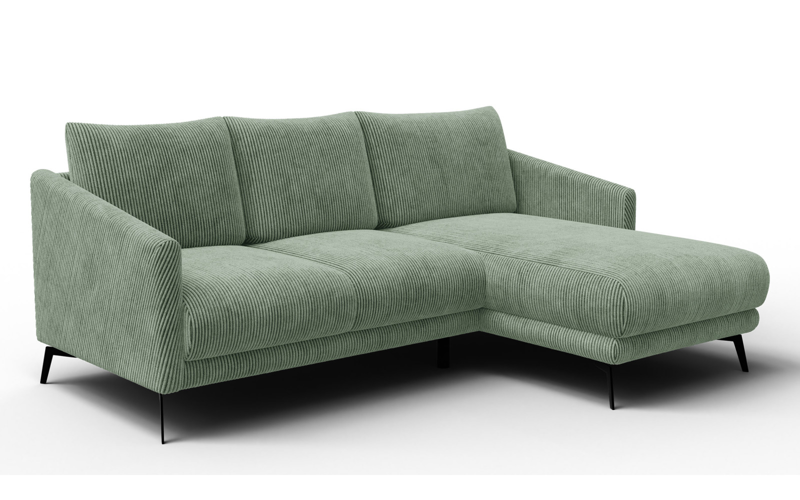 Ecksofa 3-Sitzer rechts VILT, mint - Beschreibung:Mit dem bezaubernden Ecksofa 3-Sitzer rechts VILT, mint zieht eine frische Brise in Ihr Zuhause ein, die jeden Raum sofort aufhellt und belebt. Dieses Möbelstück ist die Definition von modernem Wohnkomfort und besticht durch seine außergewöhnlich weiche Haptik und die trendige Pastellfarbe. Der Farbton Mint wirkt herrlich leicht, fast ätherisch, und verleiht Ihrem Wohnzimmer eine Note von exquisiter Zartheit und jugendlicher Frische. Es ist ein Sofa, das nicht nur zum Sitzen dient, sondern gute Laune und Optimismus versprüht. Der Bezug aus Breitcord mit seinen markanten 1cm-Streifen ist das Herzstück dieses Designs. Er verleiht dem Sofa eine spannende Textur, die zum Anfassen verführt. Die samtigen Borsten des Stoffes sind ein Genuss für die Sinne und sorgen für ein kuscheliges Gefühl, das man so schnell nicht vergisst. Durch die je nach Strichrichtung wechselnden Schattierungen entsteht ein lebendiges Farbspiel, das dem Sofa eine dynamische und zugleich gemütliche Ausstrahlung verleiht. Frische Akzente setzen mit dem Ecksofa 3-Sitzer rechts VILT, mintKomfort wird bei diesem Modell großgeschrieben. Das Ecksofa 3-Sitzer rechts VILT, mint ist mit einer hochwertigen Polsterung ausgestattet, die aus mehreren Schaumstoffschichten unterschiedlicher Dichte besteht. Ergänzt wird dies durch eine Füllung aus weichen Silikonfasern in den Kissen, die für pure Entspannung sorgen. Wenn Sie sich auf dieses Sofa setzen, spüren Sie sofort, wie der Stress des Tages von Ihnen abfällt und Sie in eine Welt der Behaglichkeit eintauchen. Die L-Form mit der Récamiere auf der rechten Seite bietet viel Platz zum Ausstrecken und Relaxen. Ob Sie einen spannenden Film schauen, ein Buch lesen oder einfach nur dösen möchten – dieses Sofa bietet Ihnen immer die perfekte Position. Die Kombination aus der frischen Farbe und der wolkenweichen Polsterung macht es zu einem traumhaften Rückzugsort, der sowohl optisch als auch funktional auf ganzer Linie überzeugt. Ein stilvolles Detail sind die schwarzen Metallfüße mit einer Höhe von 16 cm. Sie bilden einen modernen Kontrast zum zarten Mintgrün des Cords und verleihen dem Sofa eine elegante Bodenfreiheit. Dies erleichtert nicht nur die Reinigung unter dem Möbelstück, sondern sorgt auch dafür, dass das Sofa trotz seiner gemütlichen Größe nicht wuchtig wirkt, sondern eine gewisse Leichtigkeit behält, die besonders in kleineren Räumen von Vorteil ist. Das Ecksofa 3-Sitzer rechts VILT, mint als Highlight moderner WohnkulturDer verwendete Cordstoff ist nicht nur schön, sondern auch äußerst strapazierfähig. Mit einer Lichtechtheit von 4-5 und einer hohen Abriebfestigkeit bleibt die strahlende Mint-Farbe lange erhalten, auch wenn das Sofa an einem sonnigen Platz steht. Es ist ein Möbelstück, das für das echte Leben gemacht ist und auch nach Jahren der Nutzung noch mit seiner exquisiten Optik begeistert. Die Qualität des Materials garantiert, dass Sie lange Freude an diesem Designstück haben werden. Mint ist eine Farbe, die sich wunderbar vielseitig kombinieren lässt. Sie harmoniert fantastisch mit Weiß, Grau und hellen Holztönen für einen cleanen Skandi-Look, kann aber auch mit dunkleren Farben oder metallischen Akzenten in Gold und Kupfer kombiniert werden, um einen glamourösen Touch zu erzeugen. Dieses Sofa ist ein Verwandlungskünstler, der sich Ihrem persönlichen Stil anpasst und immer eine gute Figur macht. Die Investition in dieses Ecksofa ist eine Investition in Ihr tägliches Wohlbefinden. Es bietet Ihnen einen privaten Raum der Ruhe, der durch seine Weichheit und sein ansprechendes Design besticht. Jeder Moment, den Sie auf diesem Sofa verbringen, ist eine kleine Auszeit vom hektischen Alltag, ein Moment purer Erholung. Lassen Sie sich von der einzigartigen Kombination aus trendigem Design, frischer Farbe und himmlischem Sitzkomfort überzeugen. Das Cordsofa in Mint ist mehr als nur ein Einrichtungsgegenstand; es ist ein Statement für einen modernen, unbeschwerten und komfortablen Lebensstil. |