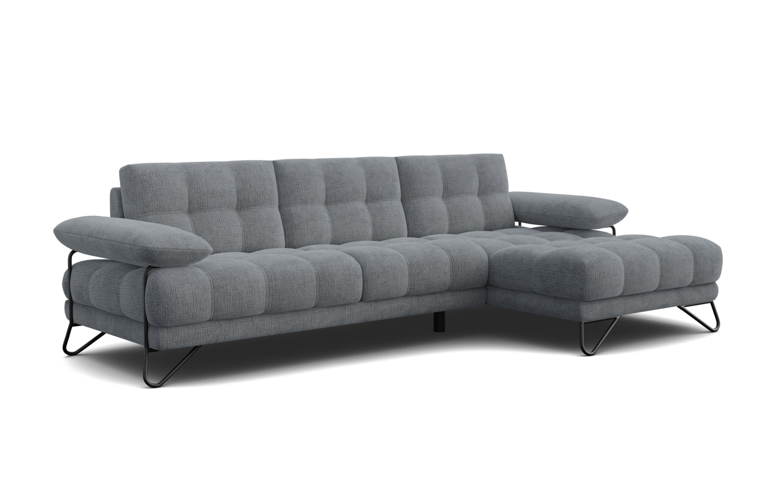 BUBBARA Ecksofa 4-Sitzer rechts, dunkelgrau - Beschreibung:Mit dem BUBBARA Ecksofa 4-Sitzer rechts, dunkelgrau holen Sie sich ein Meisterwerk der modernen Wohnkultur in Ihre vier Wände, das durch Eleganz und Gemütlichkeit gleichermaßen besticht. Dieses außergewöhnliche Möbelstück zieht durch seine souveräne Ausstrahlung sofort die Aufmerksamkeit auf sich und verspricht Momente der puren Entspannung. Die tiefe, dunkle Farbgebung verleiht dem Raum eine geerdete Ruhe und schafft eine Atmosphäre, in der man sich sofort geborgen und willkommen fühlt. Es ist die perfekte Basis für ein stilvolles Wohnzimmer, das Klasse und Komfort vereint. Der Bezug aus hochwertigem Chenille-Gewebe ist ein wahrer Genuss für die Sinne und macht jeden Aufenthalt auf diesem Sofa zu einem Erlebnis. Die Oberfläche ist traumhaft weich, flauschig und unglaublich angenehm anzufassen, was zum Verweilen und Träumen einlädt. Die klare Textur des Stoffes sorgt dabei für ein lebendiges Spiel aus Licht und Schatten, das dem dunklen Grau eine faszinierende Tiefe verleiht. Hier trifft exquisites Design auf eine Haptik, die man einfach erlebt haben muss. Charakteristisch für die Serie ist die markante Steppung, die sowohl die Sitzfläche als auch die Rückenlehne ziert und rhythmische, geometrische Unterteilungen schafft. Diese Details lockern die große Fläche optisch auf und unterstreichen die weiche Polsterung, die sich sanft an den Körper schmiegt. Das Zusammenspiel aus strenger Geometrie und einladender Softness macht das BUBBARA Ecksofa 4-Sitzer rechts, dunkelgrau zu einem unvergleichlichen Highlight in jedem Interieur. Exklusive Details des BUBBARA Ecksofa 4-Sitzer rechts, dunkelgrauEinen spannenden Kontrast zum voluminösen Korpus bilden die filigranen, schleifenförmigen Metallbeine in Schwarz. Sie verleihen dem Sofa eine schwebende Leichtigkeit und bringen einen Hauch von Industrie-Chic in Ihr Zuhause. Diese ungewöhnliche Form der Füße ist ein Beweis für den designorientierten Ansatz dieses Modells und sorgt dafür, dass das Sofa trotz seiner Größe niemals schwerfällig wirkt. Die Kombination aus dunkelgrauem Chenille und schwarzem Metall ist zeitlos und absolut stilsicher. Die massiven Armlehnen sind ein weiteres Merkmal, das bei diesem Modell sofort ins Auge fällt und den Komfort auf ein neues Level hebt. Sie sind etwas höher positioniert und ragen leicht über den Korpus hinaus, was dem Design eine dynamische Note verleiht. Diese Konstruktion bietet nicht nur eine bequeme Ablagefläche, sondern rahmt die Sitzfläche auf eine beschützende, gemütliche Weise ein. Hier können Sie sich zurücklehnen und den Stress des Alltags vollkommen vergessen. Ob für lange Fernsehabende, angeregte Gespräche mit Freunden oder einfach nur zum Lesen eines guten Buches, dieses Sofa bietet immer den perfekten Platz. Die großzügigen Maße des 4-Sitzers erlauben es, sich voll auszustrecken und die außergewöhnlich weiche Polsterung in vollen Zügen zu genießen. Es ist ein Rückzugsort, der Luxus nicht durch Prunk, sondern durch Qualität und haptische Exzellenz definiert. Das BUBBARA Ecksofa 4-Sitzer rechts, dunkelgrau als RuhepolDank der robusten Eigenschaften des verwendeten Polyesters müssen Sie sich auch im Alltag keine Sorgen um die Empfindlichkeit des edlen Stoffes machen. Das Material ist langlebig und behält auch bei intensiver Nutzung seine Schönheit und Formstabilität. Das BUBBARA Ecksofa 4-Sitzer rechts, dunkelgrau ist somit nicht nur ein optisches Highlight, sondern auch ein verlässlicher Begleiter für viele Jahre. Pflegeleichtigkeit und Designanspruch gehen hier Hand in Hand. Zusammenfassend lässt sich sagen, dass dieses Möbelstück jede Erwartung an eine moderne Wohnlandschaft erfüllt und sogar übertrifft. Die gelungene Symbiose aus dunkler Eleganz, traumhaftem Sitzkomfort und industriellen Akzenten macht es zur ersten Wahl für anspruchsvolle Genießer. Lassen Sie sich von der Qualität und dem Charme dieses Sofas überzeugen und schaffen Sie sich ein Zuhause, das Ihre Persönlichkeit perfekt widerspiegelt. |