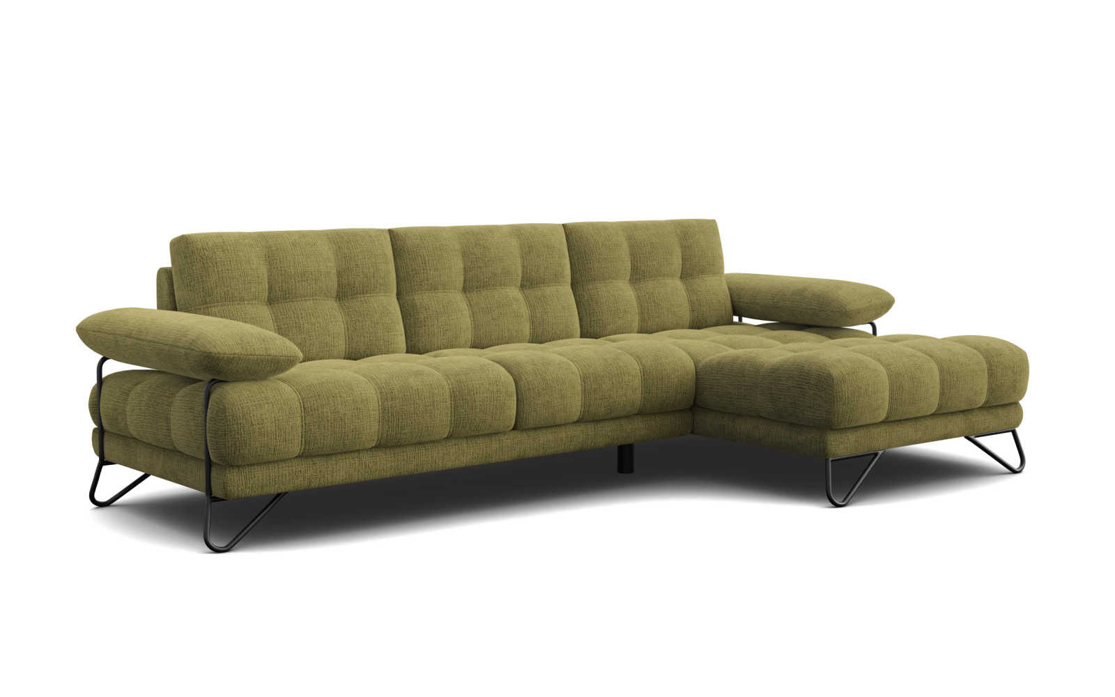 BUBBARA Ecksofa 4-Sitzer rechts, olivgrün - Beschreibung:Holen Sie sich die beruhigende Kraft der Natur direkt in Ihr Wohnzimmer mit dem traumhaften BUBBARA Ecksofa 4-Sitzer rechts, olivgrün. Dieses Möbelstück ist eine Hommage an natürliche Eleganz und modernen Wohnkomfort, perfekt geeignet, um eine Oase der Stille und Erholung zu schaffen. Der sanfte Olivton wirkt unaufdringlich und edel zugleich, wodurch er sich harmonisch in verschiedenste Raumkonzepte einfügt, von modern bis klassisch. Es ist ein Sofa, das nicht nur gesehen, sondern erlebt werden möchte, und das pure Entspannung auf den ersten Blick verspricht. Der Bezug aus hochwertigem Chenille-Gewebe ist das absolute Highlight dieses Modells und sorgt für ein haptisches Erlebnis der Extraklasse. Weich, flauschig und mit einer klaren, angenehmen Textur versehen, schmeichelt der Stoff der Haut und lädt zu langen, gemütlichen Abenden ein. Die matte, samtige Oberfläche unterstreicht die Wertigkeit des BUBBARA Ecksofa 4-Sitzer rechts, olivgrün und macht es zu einem echten Genuss für die Sinne. Hier verbindet sich Ästhetik mit einem unvergleichlichen Kuschelfaktor. Die optische Struktur erhält das Sofa durch eine aufwendige Steppung im Bereich der Sitzfläche und der Rückenlehne, die rhythmische und geometrische Akzente setzt. Diese liebevollen Details verleihen dem großen Möbelstück eine feine Gliederung und betonen die üppige Polsterung, die höchsten Sitzkomfort garantiert. Die Kombination aus organischer Farbe und strukturierter Formgebung schafft eine Balance, die das Auge beruhigt und dem Raum eine geordnete, aber wohnliche Atmosphäre verleiht. Warum das BUBBARA Ecksofa 4-Sitzer rechts, olivgrün so einzigartig istEin modernes Design-Statement setzen die auffälligen, schleifenförmigen Metallbeine in tiefem Schwarz, die das Sofa tragen. Sie bilden einen spannenden Kontrast zum natürlichen Grün des Stoffes und verleihen dem Möbelstück einen Hauch von industrieller Coolness. Diese Beine sorgen nicht nur für einen festen Stand, sondern lassen das Sofa optisch fast schweben, was dem Raum Weite und Luftigkeit verleiht. Es ist genau dieses Detail, das den Unterschied macht und den Look perfekt abrundet. Auch die Gestaltung der Armlehnen zeugt von durchdachtem Design; sie sind massiv und bieten viel Platz, sind jedoch leicht erhöht angebracht und ragen über den Korpus hinaus. Dies verleiht dem BUBBARA Ecksofa 4-Sitzer rechts, olivgrün eine dynamische Silhouette und bricht die konventionelle Formensprache auf interessante Weise. Gleichzeitig bieten sie die perfekte Stütze, um sich entspannt anzulehnen und den Tag Revue passieren zu lassen. Mit seinen großzügigen Maßen bietet der 4-Sitzer ausreichend Platz für die ganze Familie, ohne dabei den Raum zu erdrücken. Die Farbe Olivgrün wirkt dabei stets harmonisierend und lässt sich wunderbar mit Holz, Metall oder hellen Textilien kombinieren. Es ist ein Möbelstück, das sich Ihren Bedürfnissen anpasst und sowohl als Rückzugsort für ruhige Momente als auch als Zentrum für gesellige Runden dient. Komfort wird hier großgeschrieben. Natürlicher Charme trifft Design beim BUBBARA Ecksofa 4-Sitzer rechts, olivgrünDie Langlebigkeit dieses exquisiten Sofas wird durch die Verwendung von robustem Polyester sichergestellt, das den Chenille-Stoff widerstandsfähig und pflegeleicht macht. So bleibt die Schönheit des olivgrünen Bezugs auch bei täglicher Nutzung lange erhalten, und Sie können sich jeden Tag aufs Neue an Ihrem Möbelstück erfreuen. Es ist eine Investition in Qualität und Stil, die sich langfristig auszahlt und Ihr Zuhause bereichert. Zusammenfassend ist dieses Sofa die perfekte Wahl für alle, die Design lieben, aber auf Gemütlichkeit nicht verzichten wollen. Das BUBBARA Ecksofa 4-Sitzer rechts, olivgrün vereint das Beste aus zwei Welten: eine trendige, naturnahe Optik und einen Sitzkomfort, der seinesgleichen sucht. Verwandeln Sie Ihr Wohnzimmer in einen stilvollen Wohlfühlort, an dem Sie Kraft tanken und das Leben genießen können. |