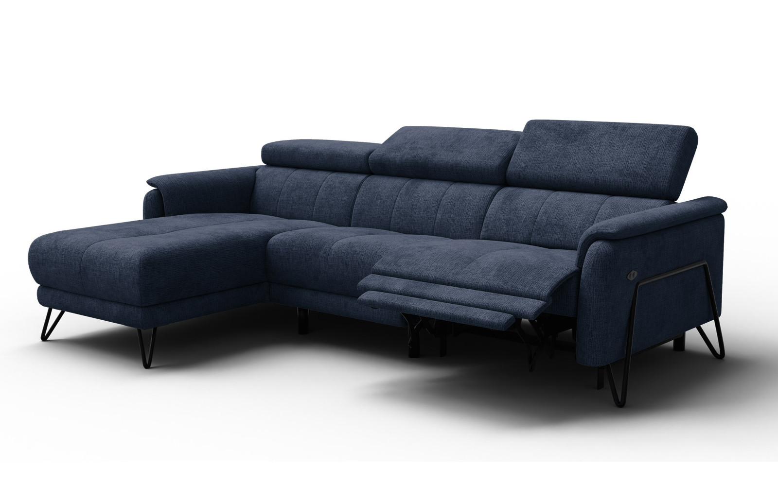 Ecksofa 4-Sitzer mit Relax RODEN, marineblau - Beschreibung:Tauchen Sie ein in eine Welt der Tiefe und Eleganz mit dem Ecksofa 4-Sitzer mit Relax RODEN, marineblau. Dieses prachtvolle Möbelstück bringt eine maritime, aber zutiefst sophistikierte Note in Ihr Wohnzimmer. Das satte Marineblau wirkt beruhigend wie der Ozean und verleiht dem Raum eine Atmosphäre von souveräner Stille und Exklusivität. Es ist ein Sofa für Menschen, die klare Statements lieben und dabei nicht auf höchsten Komfort verzichten wollen. Der Bezug aus feinem Chenille-Gewebe unterstreicht die luxuriöse Anmutung dieses Modells. Der Stoff fühlt sich unglaublich weich und samtig an, ein wahrer Genuss für die Sinne bei jeder Berührung. Die klare Textur des Gewebes sorgt dafür, dass das dunkle Blau nicht flach wirkt, sondern lebendig schimmert und je nach Beleuchtung faszinierende Nuancen offenbart. Es ist ein Material, das Geborgenheit vermittelt und gleichzeitig äußerst strapazierfähig ist. Visuell überzeugt das Ecksofa 4-Sitzer mit Relax RODEN, marineblau durch seine harmonische Linienführung. Die tiefblaue Polsterung bildet einen eleganten Kontrast zu den schwarzen, 16 cm hohen Füßen, die dem Sofa eine moderne Leichtigkeit verleihen. Trotz seiner soliden Bauweise wirkt es niemals schwerfällig, sondern fügt sich stilvoll in das Gesamtbild Ihres Raumes ein. Es ist ein Design, das Klassik und Moderne gekonnt verbindet. Der Sitzkomfort ist schlichtweg traumhaft. Die Polsterung ist so abgestimmt, dass Sie sanft einsinken, aber dennoch optimal gestützt werden. Hier können Sie lange Abende verbringen, sei es bei einem spannenden Film, einem guten Gespräch oder einfach nur, um die Ruhe zu genießen. Dieses Sofa wird schnell zum Mittelpunkt Ihres Zuhauses. Zero Gravity Technologie im Ecksofa 4-Sitzer mit Relax RODEN, marineblauWas dieses Sofa zu einem echten Highlight macht, ist die integrierte Entspannungstechnologie. Ein Sitzplatz des Ecksofa 4-Sitzer mit Relax RODEN, marineblau bietet eine elektrische Verstellfunktion der Extraklasse. Über diskret angebrachte Tasten an der Außenseite der Armlehne steuern Sie den Motor, der leise und stufenlos Ihre Wunschposition einstellt. Besonders hervorzuheben ist die Zero Gravity Position. Hierbei werden Ihre Füße auf Herzhöhe gebracht, was den Körper in einen Zustand der fast völligen Schwerelosigkeit versetzt. Der Druck auf die Bandscheiben wird minimiert, die Durchblutung gefördert – ein Gefühl, als würden Sie auf dem Wasser treiben. Diese Funktion bietet pure Entspannung und Regeneration. Das lange Kabel sorgt zudem dafür, dass Sie bei der Aufstellung des Sofas im Raum nicht eingeschränkt sind. Die Technik ist so verbaut, dass sie von außen kaum sichtbar ist und das ästhetische Gesamtbild nicht stört. Warum das Ecksofa 4-Sitzer mit Relax RODEN, marineblau Ihr Interieur bereichertDas Ecksofa 4-Sitzer mit Relax RODEN, marineblau ist eine Anschaffung fürs Leben. Die Kombination aus dem tiefen, beruhigenden Blau und dem unglaublich weichen Chenille-Stoff schafft einen Rückzugsort von unvergleichlicher Qualität. Der pflegeleichte Polyesterstoff sorgt dafür, dass Sie sich keine Sorgen um die Haltbarkeit machen müssen. Dieses Sofa passt hervorragend zu hellen Möbeln, Holzböden oder auch als farbiger Akzent in einem minimalistischen Ambiente. Es strahlt eine zeitlose Eleganz aus, die Trends überdauert. Erlauben Sie sich diesen Luxus und verwandeln Sie Ihr Wohnzimmer in einen Ort des Wohlbefindens. Mit dem Roden in Marineblau holen Sie sich ein Stück Lebensqualität nach Hause. |