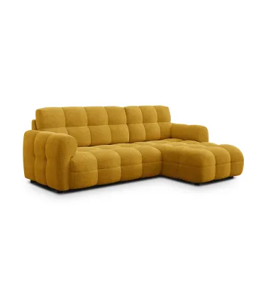 3-Sitzer-Ecksofa in Safran mit klarem Design und zeitloser Farbe. Maße 248 × 84 × 173 cm, Lieferung in 2 Paketen mit einfacher Montage.