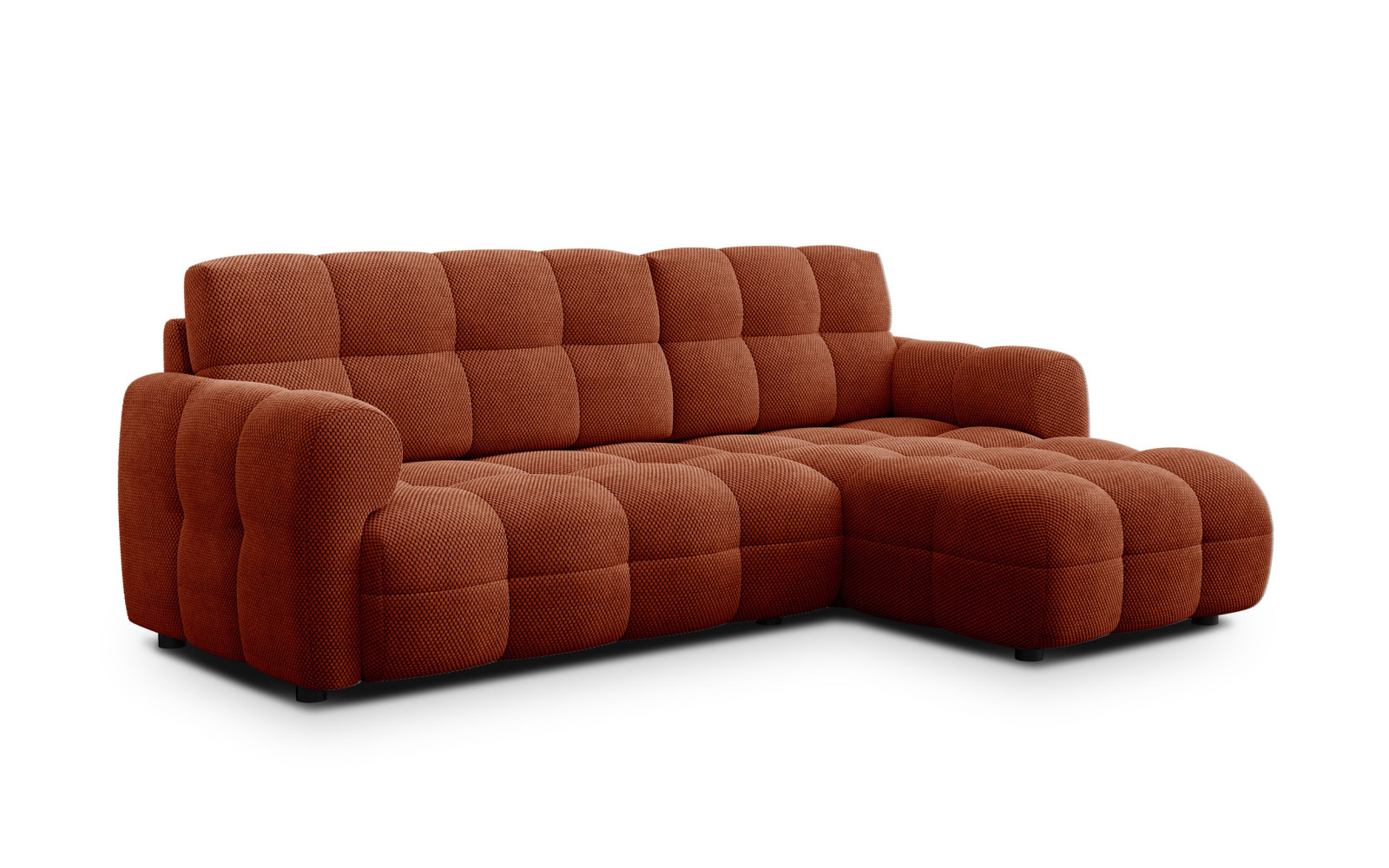 Ecksofa 3-Sitzer rechts MELLOW, dunkelorange - Beschreibung:Setzen Sie ein mutiges und warmes Statement in Ihrem Wohnbereich mit dem Ecksofa 3-Sitzer rechts MELLOW, dunkelorange. Dieses atemberaubende Möbelstück ist pure Energie und Lebensfreude, eingefangen in einer Form von exquisiter Gemütlichkeit. Der satte, dunkle Orangeton strahlt eine wohlige Wärme aus, die besonders an grauen Tagen die Stimmung hebt und eine Atmosphäre von mediterraner Gelassenheit und herbstlicher Behaglichkeit schafft. Es ist ein Sofa für Individualisten, die Design lieben und keine Angst vor Farbe haben. Der charakteristische Waffelstoff kommt in dieser lebendigen Farbe besonders gut zur Geltung. Die dreidimensionale Würfelstruktur sorgt für ein faszinierendes Spiel aus Licht und Schatten, das dem Dunkelorange eine unglaubliche Tiefe verleiht. Das Ecksofa 3-Sitzer rechts MELLOW, dunkelorange fühlt sich dabei außergewöhnlich weich und samtig an. Es ist ein haptisches Erlebnis, das dazu verführt, immer wieder über den Stoff zu streichen und die hochwertige Qualität buchstäblich zu begreifen. Ein Genuss für die Sinne in jeder Hinsicht. Warum das Ecksofa 3-Sitzer rechts MELLOW, dunkelorange der Mittelpunkt Ihres Zuhauses wirdDieses Sofa ist nicht nur ein optisches Highlight, sondern auch ein Meisterwerk des Komforts. Das Ecksofa 3-Sitzer rechts MELLOW, dunkelorange bietet dank seiner ausgeklügelten Polsterung pure Entspannung auf höchstem Niveau. Die Sitzfläche aus mehrschichtigem Schaumstoff garantiert langlebige Stabilität, während die Rückenkissen mit einer Füllung aus Silikonfasern für ein himmlisch weiches Anlehngefühl sorgen. Diese Kombination macht das Sitzen und Liegen zu einem traumhaften Erlebnis. Stellen Sie sich vor, wie Sie nach einem langen Tag in diese weichen Kissen sinken, umgeben von der warmen Farbe, die Geborgenheit vermittelt. Die Silikonfüllung passt sich perfekt Ihrem Körper an und bietet einen Komfort, den man sonst nur von Luxusbetten kennt. Es ist der ideale Ort, um Energie zu tanken, zu lesen oder einfach nur die Seele baumeln zu lassen. Die Farbe wirkt stimulierend und beruhigend zugleich – eine perfekte Balance. Trotz seiner auffälligen Farbe lässt sich das Sofa überraschend vielseitig kombinieren. Es passt hervorragend zu dunklen Hölzern, grauen Betonwänden im Industrial Style oder als warmer Kontrast in eine weiße Umgebung. Die schwarzen, unauffälligen Füße erden das Design und lassen die Farbe noch mehr strahlen. Es ist ein Möbelstück, das Charakter zeigt und jedem Raum eine persönliche Note verleiht. Qualität und Langlebigkeit im Ecksofa 3-Sitzer rechts MELLOW, dunkelorangeWer denkt, dass ein so schönes Sofa empfindlich ist, irrt. Der Waffelstoff des Ecksofa 3-Sitzer rechts MELLOW, dunkelorange ist extrem robust und widerstandsfähig. Mit einer Grammatur von 300 g/m² und einer hohen Abriebfestigkeit ist es für den täglichen Gebrauch bestens gerüstet. Die Struktur des Stoffes verzeiht vieles und bleibt auch bei Belastung formstabil. Zudem sorgt die hohe Lichtechtheit dafür, dass das strahlende Dunkelorange seine Leuchtkraft über Jahre hinweg behält. Die Kombination aus dekorativem Erscheinungsbild und praktischer Haltbarkeit macht dieses Sofa zu einer klugen Investition. Es vereint Kunst und Nutzen auf eine Weise, die im Alltag besteht. Sie müssen sich keine Sorgen um schnelle Abnutzung machen, sondern können sich ganz auf das Genießen konzentrieren. Das Ecksofa MELLOW in Dunkelorange ist die perfekte Wahl für alle, die ihr Zuhause mit Wärme, Stil und unvergleichlichem Komfort bereichern wollen. Es ist mehr als ein Sitzmöbel – es ist ein Ort der Freude und der puren Entspannung. |