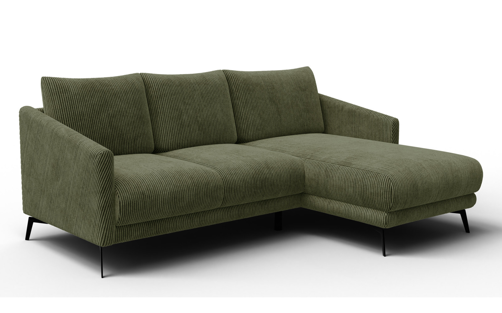 Ecksofa 3-Sitzer rechts VILT, olive - Beschreibung:Das wunderschöne Ecksofa 3-Sitzer rechts VILT, olive bringt die beruhigende Kraft der Natur direkt in Ihr Wohnzimmer und schafft eine Atmosphäre von exquisiter Harmonie. Dieses Möbelstück ist die perfekte Wahl für alle, die sich nach einem langen Tag nach einem Ort sehnen, der pure Entspannung und Geborgenheit ausstrahlt. Der tiefe, erdige Olivton wirkt unaufdringlich und edel zugleich, wodurch er sich hervorragend in moderne, aber auch klassische Interieurs einfügt und dort als Ruhepol fungiert. Die großzügige Gestaltung lädt sofort zum Verweilen ein. Der Bezug aus trendigem Breitcord ist ein wahrer Genuss für die Sinne. Mit einer Streifenbreite von einem Zentimeter bietet der Stoff eine faszinierende Struktur, die das Licht auf interessante Weise bricht und dem Sofa eine lebendige Tiefe verleiht. Wenn Sie mit der Hand über die Oberfläche streichen, spüren Sie die außergewöhnlich weiche Beschaffenheit der samtigen Borsten, die jeden Hautkontakt zu einem kleinen Wellness-Moment machen. Diese haptische Qualität macht das Sofa zu einem unvergleichlichen Wohlfühlmöbel. Natürliche Eleganz erleben mit dem Ecksofa 3-Sitzer rechts VILT, oliveDer Sitzkomfort beim Ecksofa 3-Sitzer rechts VILT, olive ist absolut traumhaft und lässt keine Wünsche offen. Dank der intelligenten Kombination aus Schaumstoffschichten verschiedener Dichten im Sitzbereich und einer Füllung aus hochwertigen Silikonfasern in den Kissen, erleben Sie ein Sitzgefühl, das sowohl stützend als auch unglaublich kuschelig ist. Es ist, als würden Sie sanft umarmt werden, sobald Sie Platz nehmen – ideal, um Stress abzubauen und neue Kraft zu tanken. Die rechte Ausrichtung des Ecksofas nutzt den vorhandenen Raum optimal aus und bietet genügend Platz für die ganze Familie oder einen gemütlichen Abend mit Freunden. Die softe Polsterung verleitet dazu, die Zeit zu vergessen und sich ganz dem Komfort hinzugeben. Egal ob Sie sitzen, liegen oder lümmeln, dieses Sofa passt sich Ihren Bedürfnissen an und bietet in jeder Position eine ergonomisch angenehme und flauschige Unterlage, die man am liebsten nie wieder verlassen möchte. Stilistisch bewegt sich dieses Modell sicher zwischen skandinavischer Gemütlichkeit und modernem Industrial-Chic. Die 16 Zentimeter hohen, schwarzen Metallfüße sorgen nicht nur für einen sicheren Stand, sondern verleihen dem voluminösen Polstermöbel auch eine schwebende Leichtigkeit. Dieser Kontrast zwischen dem organischen Olivgrün des weichen Cords und dem kühlen, schwarzen Metall ist ein optisches Highlight, das Zeugnis von geschmackvollem Designbewusstsein ablegt. Langlebige Qualität im Ecksofa 3-Sitzer rechts VILT, olive für Ihren AlltagTrotz seiner feinen, samtigen Anmutung ist der verwendete Polyesterstoff äußerst robust und alltagstauglich. Mit Werten von 35.000 Martindale ist der Bezug widerstandsfähig gegen Abrieb und Pilling, sodass das Sofa auch bei intensiver Nutzung lange seine exquisite Schönheit behält. Die Farbe Olive ist zudem dankbar und verzeiht kleine Missgeschicke im Alltag leichter als hellere Töne, was das Sofa zu einem perfekten Begleiter für lebhafte Haushalte macht. Die visuelle Ruhe, die von diesem Möbelstück ausgeht, überträgt sich auf den gesamten Raum. Olive ist eine Farbe, die für Balance und Regeneration steht. In Kombination mit hellen Hölzern, cremefarbenen Teppichen oder goldenen Wohnaccessoires entfaltet das Sofa seine volle Pracht und verwandelt Ihr Wohnzimmer in eine stilvolle Oase der Ruhe. Es ist ein Möbelstück, das nicht dominiert, sondern den Raum bereichert und veredelt. Die handwerkliche Qualität zeigt sich in jedem Detail, von den präzisen Nähten bis zur stabilen Konstruktion. Wenn Sie sich für dieses Sofa entscheiden, wählen Sie ein Produkt, das Design und Funktionalität auf höchstem Niveau vereint. Es bietet Ihnen den Luxus, jeden Tag in einer Umgebung zu verbringen, die sowohl ästhetisch ansprechend als auch physisch wohltuend ist. Zusammenfassend ist dieses Cordsofa in Olive ein Meisterwerk der Gemütlichkeit. Es verbindet die Robustheit eines modernen Möbels mit der Weichheit eines klassischen Lounge-Sofas. Lassen Sie sich von der natürlichen Ausstrahlung und dem unvergleichlichen Komfort begeistern und machen Sie Ihr Wohnzimmer zu Ihrem neuen Lieblingsort. |
