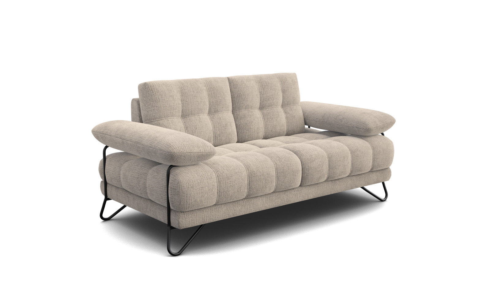 BUBBARA 2-Sitzer-Sofa, beige - Beschreibung:Das BUBBARA 2-Sitzer-Sofa, beige ist die perfekte Symbiose aus trendigem Design und natürlicher Behaglichkeit. Der warme Beigeton strahlt Ruhe und Erdung aus, ideal für ein Zuhause, das als Rückzugsort dienen soll. Dieses kompakte Sofa passt hervorragend in urbane Apartments oder gemütliche Leseecken. Es wirkt unaufdringlich elegant und bringt eine organische Note in Ihre Einrichtung, die zeitlos und modern zugleich ist. Ein Highlight ist zweifellos der exquisite Chenille-Stoff. Er fühlt sich traumhaft weich und flauschig an, fast wie Samt, besitzt aber eine klarere Textur. Diese Haptik macht das BUBBARA 2-Sitzer-Sofa, beige zu einem haptischen Erlebnis – ein Genuss für die Sinne. Der Stoff unterstreicht die weiche Formensprache des Sofas und lädt zu purer Entspannung ein. Er ist zudem pflegeleicht, was ihn perfekt für den Alltag macht. Die charakteristische Steppung der Polster sorgt für eine geometrische Ordnung, die dem Sofa einen modernen Twist gibt. Die Armlehnen sind massiv und leicht erhöht, was nicht nur gut aussieht, sondern auch für ein geborgenes Sitzgefühl sorgt. Sie bilden einen schönen Rahmen für gemütliche Stunden zu zweit oder allein. Warum das BUBBARA 2-Sitzer-Sofa, beige ein Hingucker istEinen spannenden Kontrast zur natürlichen Farbe und dem weichen Stoff bilden die außergewöhnlichen Metallbeine in Schwarz. Ihre geschwungene Schleifenform ist ein echtes Design-Merkmal, das dem Sofa einen Hauch von Industrial-Style verleiht. Sie heben das Sofa optisch an und lassen es trotz der massiven Polsterung leicht wirken. Diese Kombination aus Beige und Schwarz ist absolut edel. Das BUBBARA 2-Sitzer-Sofa, beige lässt sich wunderbar kombinieren. Es passt zu Holz, Beton, Glas und vielen Farben. Es ist ein unkompliziertes Möbelstück, das dennoch viel Stil beweist. Qualität und Sitzvergnügen im BUBBARA 2-Sitzer-Sofa, beigeNehmen Sie Platz und genießen Sie den Komfort. Die Polsterung ist bequem und formstabil. Der robuste Polyester-Bezug garantiert eine lange Lebensdauer. Dieses Sofa ist gemacht für Menschen, die Design und Gemütlichkeit verbinden wollen. Es ist ein kleines Sofa mit großer Wirkung. Verleihen Sie Ihrem Raum das gewisse Etwas. Erleben Sie modernes Wohnen. Das BUBBARA Sofa in Beige ist bereit für Sie. |