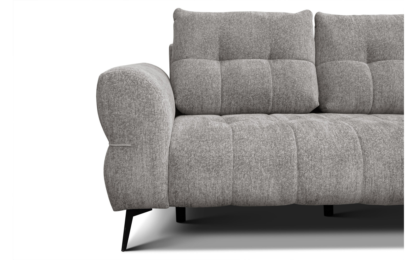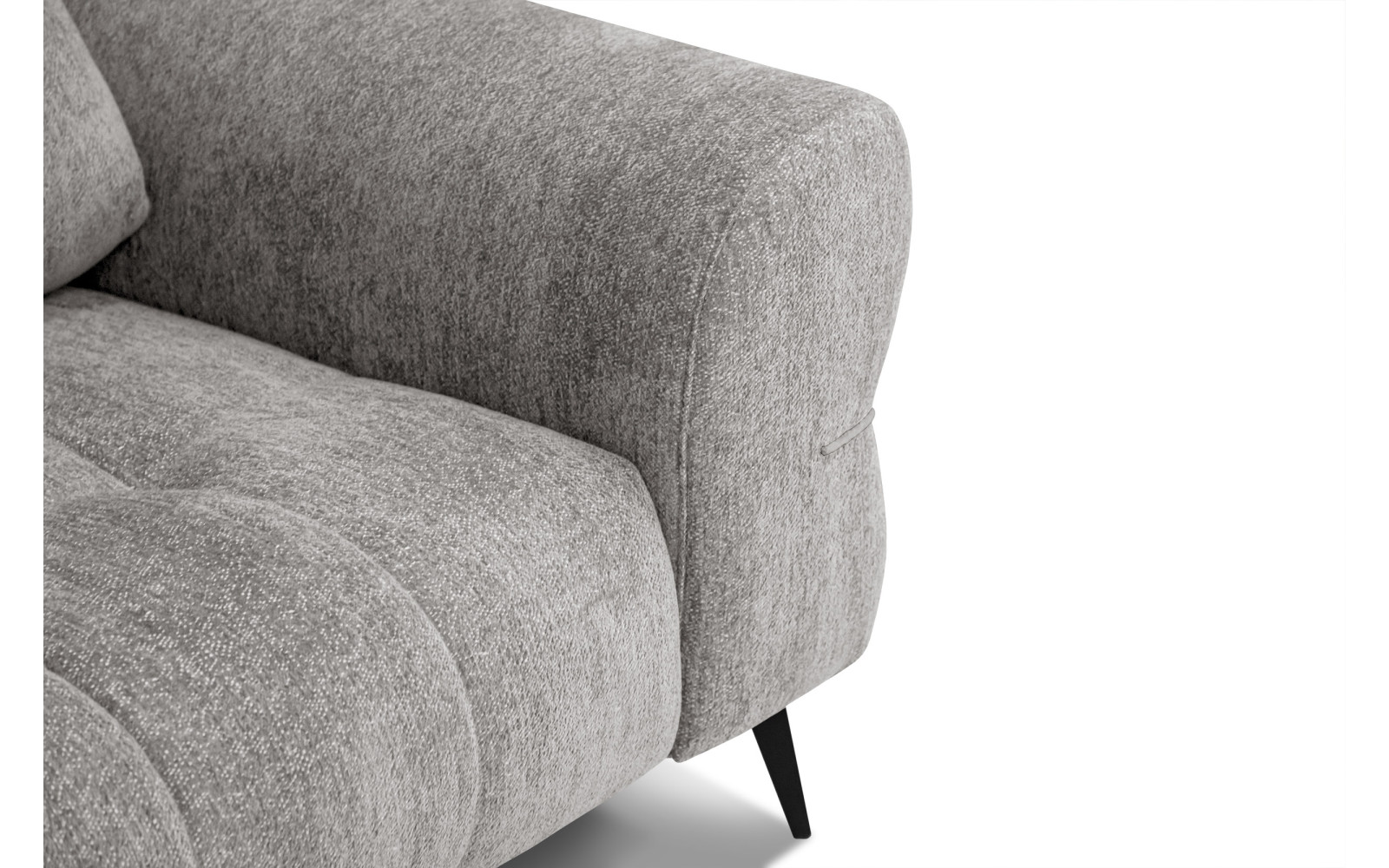 Ein weiteres Highlight sind die schlanken, schwarzen Füße mit einer Höhe von 16 cm. Sie bilden einen stilvollen Kontrast zum platingrauen Polster und lassen das Möbelstück optisch fast schweben. Diese Leichtigkeit im Design sorgt dafür, dass selbst kleinere Räume nicht überladen wirken. Die Kombination aus dem kühlen Grau und dem tiefen Schwarz der Beine ist ein Ausdruck von exquisitem Geschmack und zeitloser Ästhetik. Hier vereinen sich Stabilität und filigrane Optik zu einem harmonischen Ganzen.