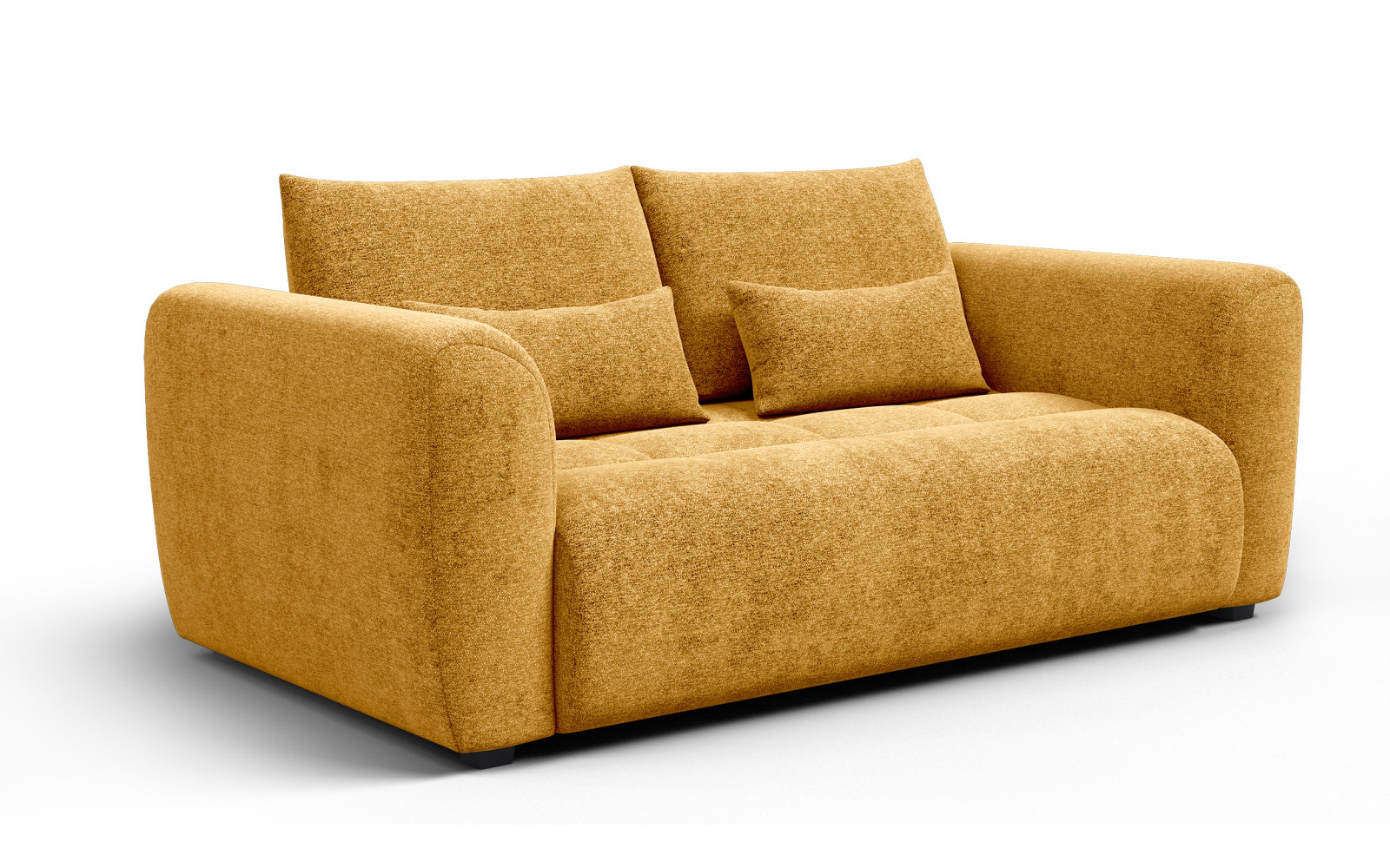 Das Design des Sofa 3-Sitzer SORENO, gelb ist eine Hommage an moderne Formen, die jedoch niemals kühl oder unnahbar wirken. Die abgerundeten Kanten und die sanfte Linienführung der Lehnen verleihen dem Möbelstück einen organischen, fast fließenden Charakter. Diese Formsprache harmoniert wunderbar mit der optimistischen Farbe und schafft eine Atmosphäre, die sowohl anregend als auch beruhigend wirkt. Es fügt sich traumhaft in minimalistische Konzepte ein, wo es als farbiger Solitär glänzt, passt aber ebenso gut in eklektische Wohnstile.