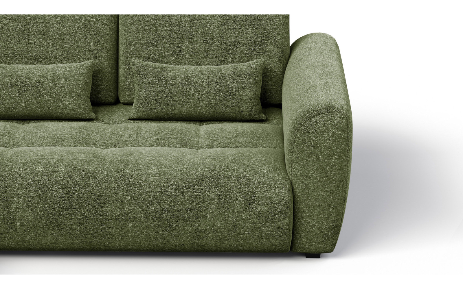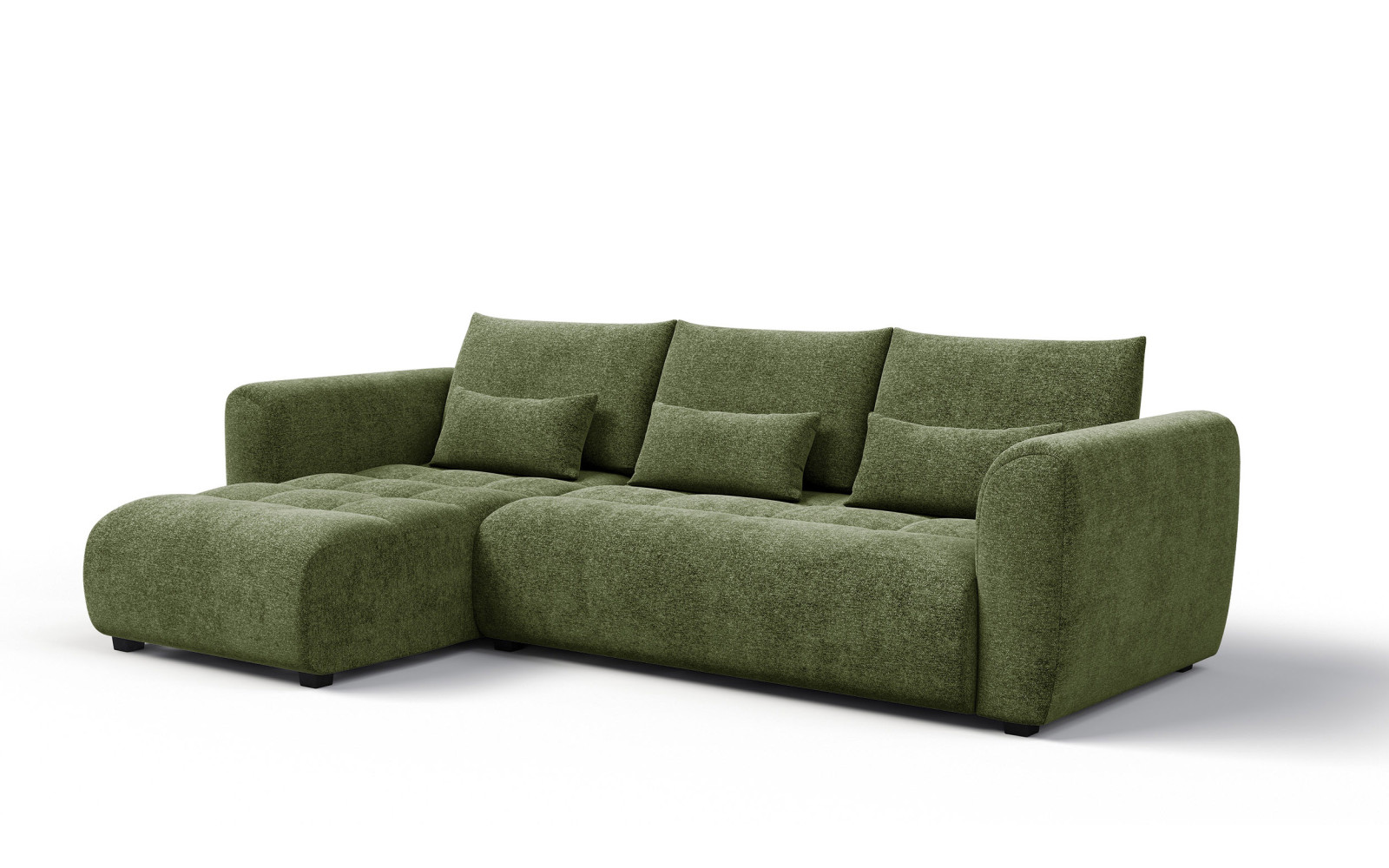 Ecksofa 4-Sitzer links SORENO, dunkelgrün - Beschreibung:Bringen Sie mit dem Ecksofa 4-Sitzer links SORENO, dunkelgrün eine Note von natürlicher Eleganz und tiefer Ruhe in Ihr Zuhause. Dieses exquisite Möbelstück verkörpert eine seltene Harmonie aus modernem Design und klassischer Gemütlichkeit, die jeden Raum augenblicklich aufwertet. Die sanft abgerundeten Formen der Rückenlehnen und Seiten verleihen dem Sofa eine organische Anmutung, die außergewöhnlich weich und einladend wirkt. Es ist, als würde das Sofa den Betrachter sanft umarmen wollen, was es zum idealen Mittelpunkt für ein stilvolles und zugleich behagliches Wohnzimmer macht. Der tiefgründige Grünton des Bezugs strahlt eine beruhigende Gelassenheit aus und erinnert an die Stille eines dichten Waldes. Diese Farbe fügt sich hervorragend in minimalistische sowie opulente Einrichtungsstile ein und setzt dabei einen souveränen Akzent. Das Design verzichtet bewusst auf harte Kanten und setzt stattdessen auf fließende Übergänge, was dem großen 4-Sitzer eine überraschende visuelle Leichtigkeit verleiht. Es ist ein Genuss für die Sinne, diese ausgewogene Ästhetik im eigenen Heim zu erleben. Hervorzuheben ist die traumhafte Qualität des verwendeten Veloursstoffes. Mit seinen kurzen Borsten und der zarten, heterogenen Textur bietet er ein haptisches Erlebnis, das seinesgleichen sucht. Die Oberfläche fühlt sich samtig und warm an, was jeden Kontakt mit der Haut zu einem kleinen Wohlfühlmoment macht. Doch nicht nur das Gefühl überzeugt: Je nach Lichteinfall schimmert der Stoff dezent und offenbart seine vielschichtige Struktur, was dem Möbelstück eine lebendige und edle Ausstrahlung verleiht. Warum das Ecksofa 4-Sitzer links SORENO, dunkelgrün Ihr Wohnzimmer veredeltEin besonderes Merkmal dieses Modells ist der faszinierende Schattierungseffekt des Velours, der das Ecksofa 4-Sitzer links SORENO, dunkelgrün zu einem wahren Blickfang macht. Durch die Veränderung des Lichteinfallswinkels entstehen feine Farbnuancen, die der tiefgrünen Oberfläche eine geheimnisvolle Tiefe verleihen. Diese optische Raffinesse sorgt dafür, dass das Sofa zu jeder Tageszeit anders wirkt, aber immer exquisit und hochwertig bleibt. Es ist pure Entspannung für das Auge, diese subtilen Veränderungen wahrzunehmen. Der Komfort steht der Optik in nichts nach. Ausgestattet mit hohen Rückenkissen, bietet dieses Sofa eine hervorragende Unterstützung für den Rücken, sodass Sie sich entspannt zurücklehnen können. Ergänzt wird dieses Arrangement durch schmale Lendenkissen, die nicht nur das Design vollenden, sondern auch ergonomisch wertvoll sind. Sie sorgen für eine gesunde Position der Wirbelsäule und machen selbst langes Sitzen zu einem komfortablen Vergnügen. Die dezente Steppung der Sitzfläche bringt zusätzlich Struktur in die weiche Optik. Unter der edlen Oberfläche verbirgt sich ein durchdachtes Innenleben aus Schaumstoffschichten unterschiedlicher Dichte. Diese Konstruktion garantiert nicht nur ein unvergleichlich bequemes Sitzgefühl, sondern auch die Langlebigkeit des Möbelstücks. Sie können sicher sein, dass die Polsterung auch nach vielen Jahren ihre Form und Elastizität behält. Die schwarzen Füße runden das Gesamtbild ab und sorgen für einen fast schwebenden Eindruck des massiven Korpus. Erleben Sie mit dem Ecksofa 4-Sitzer links SORENO, dunkelgrün pure EntspannungDas Ecksofa 4-Sitzer links SORENO, dunkelgrün ist mehr als nur eine Sitzgelegenheit; es ist ein Ort, an dem Sie die Hektik des Alltags vergessen können. Die großzügigen Dimensionen bieten ausreichend Platz für die ganze Familie oder um sich allein vollkommen auszustrecken. Die Kombination aus dem weichen Velours und der stützenden Polsterung schafft ein Gefühl von Geborgenheit, das in modernen Wohnlandschaften oft gesucht wird. Die Pflegeleichtigkeit und Widerstandsfähigkeit des Stoffes sorgen dafür, dass Sie lange Freude an diesem luxuriösen Möbelstück haben werden. Es lädt dazu ein, gemütliche Abende mit einem Buch oder einem guten Film zu verbringen, eingehüllt in eine Atmosphäre von stiller Klasse und Komfort. Die abgerundete Formensprache fördert zudem eine kommunikative Atmosphäre, wenn Gäste zu Besuch sind. Entscheiden Sie sich für dieses außergewöhnliche Sofa, wenn Sie Wert auf Design, Haptik und Langlebigkeit legen. Es vereint alle Eigenschaften, die man sich von einem hochwertigen Polstermöbel wünscht, und fügt Ihrem Zuhause eine Note von Exklusivität hinzu. Genießen Sie den Luxus, sich jeden Tag auf Ihr neues Lieblingsstück freuen zu können. |
