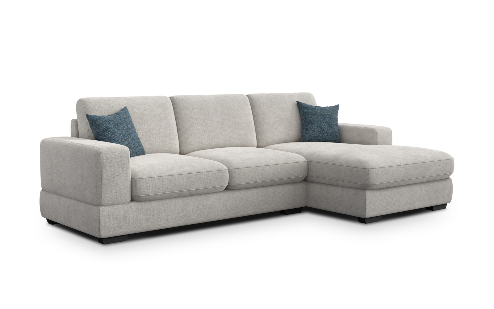 Die niedrigen, schwarzen Kunststofffüße (4 cm) sind so konzipiert, dass sie fast unsichtbar bleiben und dem Sofa eine bodennahe, massive Optik verleihen, die Solidität und Ruhe ausstrahlt. Dies unterstreicht den Lounge-Charakter des Möbels. Die Sitzhöhe von 49 cm ist dabei äußerst komfortabel und erleichtert das Aufstehen, während die Sitztiefe von 56 cm ideal ist, um sich gemütlich zurückzulehnen. Dieses Sofa ist nicht nur ein optisches Highlight, sondern ein funktionales Meisterwerk für den täglichen Gebrauch.