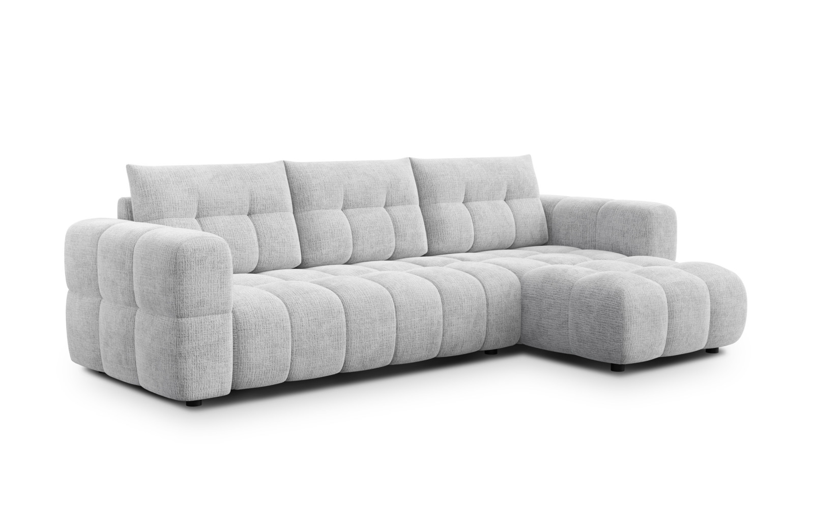 CLOUDI Ecksofa 4-Sitzer rechts, hellgrau - Beschreibung:Verleihen Sie Ihrem Wohnraum eine Atmosphäre von Leichtigkeit und moderner Frische mit dem CLOUDI Ecksofa 4-Sitzer rechts, hellgrau. Dieses Möbelstück verkörpert den beliebten skandinavischen Stil in seiner gemütlichsten Form. Das Hellgrau ist eine exquisite, neutrale Basis, die den Raum optisch öffnet und heller wirken lässt. Die Form des Sofas ist unvergleichlich weich und abgerundet, was den Namen Cloudi perfekt widerspiegelt. Es wirkt wie eine sanfte Wolke, auf der man sich niederlassen möchte, um pure Entspannung zu genießen. Das Chenille-Gewebe des Bezugs ist ein wahres Highlight. Es besitzt eine klare Textur und fühlt sich außergewöhnlich flauschig und samtig an. Dieser Stoff ist nicht nur optisch ansprechend, sondern auch ein Genuss für die Sinne. Die feinen Chenillefäden erzeugen einen dezenten Schimmer, der dem Hellgrau eine edle Nuance verleiht. Gleichzeitig ist das Material robust und pflegeleicht, ideal für einen lebendigen Haushalt, in dem Design und Funktion Hand in Hand gehen. Das einzigartige Designkonzept des CLOUDI Ecksofa 4-Sitzer rechts, hellgrauDas Design des CLOUDI Ecksofa 4-Sitzer rechts, hellgrau besticht durch seine rhythmische Nahtführung. Breite Nähte durchziehen den Korpus und schaffen eine geometrische Struktur, die dem Sofa eine leicht modulare und sehr zeitgemäße Optik verleiht. Diese Details brechen die großen Flächen auf und sorgen für visuelles Interesse, ohne die Harmonie des hellen Farbtons zu stören. Es ist ein perfektes Beispiel für Soft Minimalism. Die schwarzen Füße bilden einen subtilen Kontrast zum hellen Stoff und verankern das Sofa optisch im Raum. Die Silhouette ist kompakt und wohlgeformt, sodass das Sofa auch in nicht riesigen Räumen eine gute Figur macht. Es bietet Platz für vier Personen und ist somit der ideale Treffpunkt für Familie und Freunde. Es fügt sich nahtlos in moderne Wohnkonzepte ein und lässt sich wunderbar mit pastelligen Kissen oder kräftigen Farbakzenten kombinieren. Maximaler Komfort und Stabilität im CLOUDI Ecksofa 4-Sitzer rechts, hellgrauNeben der Optik überzeugt dieses Modell durch seine inneren Werte. Die Polsterung besteht aus einer Kombination verschiedener Schaumstoffe und einer Schicht Watte. Dies sorgt für einen Effekt des stabilen Zusammenbruchs – Sie sitzen weich, werden aber dennoch gut gestützt. Das CLOUDI Ecksofa 4-Sitzer rechts, hellgrau bietet somit einen traumhaften Komfort, der auch nach Stunden nicht nachlässt. Die ergonomische Gestaltung der Sitzhöhe und -tiefe trägt dazu bei, dass Sie immer eine angenehme Position finden. Ob beim Fernsehen, Lesen oder einfach nur Dösen, dieses Sofa ist Ihr persönlicher Rückzugsort. Die weiche Oberfläche des Chenille-Stoffs macht jeden Moment auf diesem Sofa zu einem kleinen Wellness-Erlebnis. Zusammenfassend ist dieses hellgraue Ecksofa die perfekte Symbiose aus hellem, freundlichem Design und unübertroffener Bequemlichkeit. |