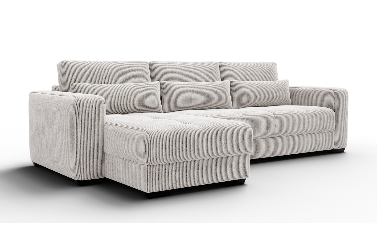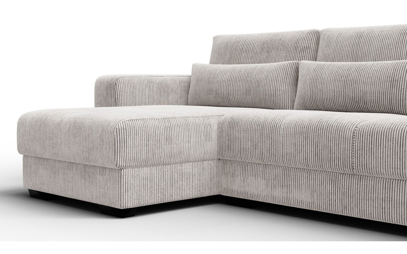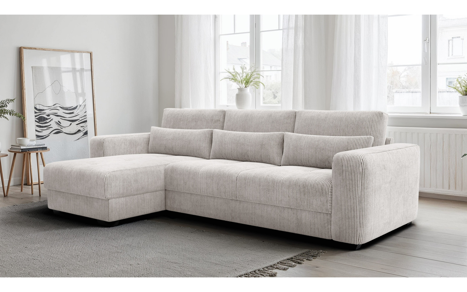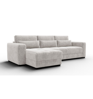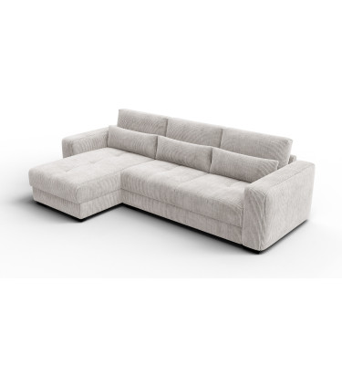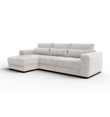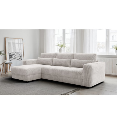 Ecksofa 4-Sitzer links OLI, perlweiß - Beschreibung:Erleben Sie mit dem Ecksofa 4-Sitzer links OLI, perlweiß einen Hauch von purem Luxus in Ihren eigenen vier Wänden. Dieses atemberaubende Möbelstück ist der Inbegriff von Helligkeit und Raffinesse. Der Farbton Perlweiß strahlt eine unvergleichliche Eleganz aus und lässt jeden Raum optisch größer und offener wirken. Es ist ein Sofa für Ästheten, die Wert auf ein exquisites Ambiente legen und dabei keine Kompromisse beim Komfort eingehen möchten. Das Design ist modern, schnörkellos und doch voller Wärme. Der Bezug aus feinem Cordstoff mit seinen charakteristischen Streifen ist ein haptisches Erlebnis der Sonderklasse. Außergewöhnlich weich und samtig im Griff, lädt er dazu ein, mit der Hand darüber zu streichen und die Struktur zu fühlen. Das Licht spielt sanft auf den Erhebungen des Stoffes, was dem perlweißen Ton eine faszinierende Lebendigkeit verleiht. Es ist ein Genuss für die Sinne, sich auf diesem Sofa niederzulassen. Trotz der hellen Farbe ist das Material so gewählt, dass es den Anforderungen des täglichen Lebens standhält, ohne seine luxuriöse Ausstrahlung zu verlieren. Die großzügige Sitzfläche auf der linken Seite bietet viel Platz zum Ausstrecken und Relaxen. Hier finden Sie Ruhe und Entspannung auf höchstem Niveau, eingebettet in weiche Formen und erstklassige Materialien. Warum das Ecksofa 4-Sitzer links OLI, perlweiß Ihre Einrichtung veredeltDas Ecksofa 4-Sitzer links OLI, perlweiß fungiert wie ein strahlender Mittelpunkt in Ihrem Wohnzimmer. Es zieht die Blicke auf sich, ohne aufdringlich zu wirken. Die Farbe Perlweiß lässt sich hervorragend mit dunklen Akzenten, metallischen Accessoires oder naturbelassenem Holz kombinieren, wodurch spannende Kontraste entstehen. Es ist die perfekte Bühne für Ihren individuellen Stil. Die abgerundeten Linien und die massiven Armlehnen unterstreichen den zeitgenössischen Charakter des Möbels. Es wirkt wie eine moderne Skulptur, die jedoch voll und ganz auf Bequemlichkeit ausgerichtet ist. Die hochwertige Verarbeitung sorgt dafür, dass die Nähte und Kanten auch bei intensiver Nutzung perfekt sitzen und das elegante Gesamtbild wahren. Mit diesem Sofa holen Sie sich ein Stück Designgeschichte nach Hause, das Modernität mit klassischer Gemütlichkeit verbindet. Es ist ein Statement für guten Geschmack und den Wunsch nach einem harmonischen, hellen Zuhause, in dem man sich sofort wohlfühlt. Ergonomie und Gemütlichkeit im Ecksofa 4-Sitzer links OLI, perlweißUnter dem traumhaft schönen Bezug des Ecksofa 4-Sitzer links OLI, perlweiß verbirgt sich ein Kern aus hochflexiblem Schaumstoff. Dieser bietet eine mittelfeste Sitzqualität, die als ideal für langes Sitzen und Liegen empfunden wird. Sie sinken sanft ein, werden aber gleichzeitig optimal gestützt, was pure Entspannung für den Rücken bedeutet. Die samtige Oberfläche des Cords sorgt zudem für ein warmes und angenehmes Hautgefühl. Im Gegensatz zu glatten Stoffen bietet die Struktur eine gewisse Griffigkeit, die das Sitzen noch gemütlicher macht. Es ist der perfekte Ort, um nach einem langen Arbeitstag die Seele baumeln zu lassen und neue Energie zu tanken. Dieses Sofa beweist, dass sich helles Design und absolute Alltagstauglichkeit nicht ausschließen müssen. Es ist ein Ort der Zuflucht, der Exklusivität und Komfort auf eine Weise vereint, die Sie jeden Tag aufs Neue begeistern wird. |
