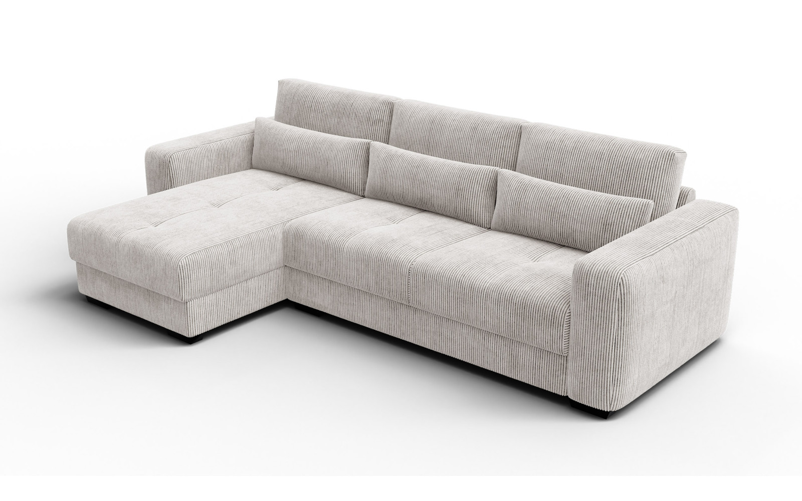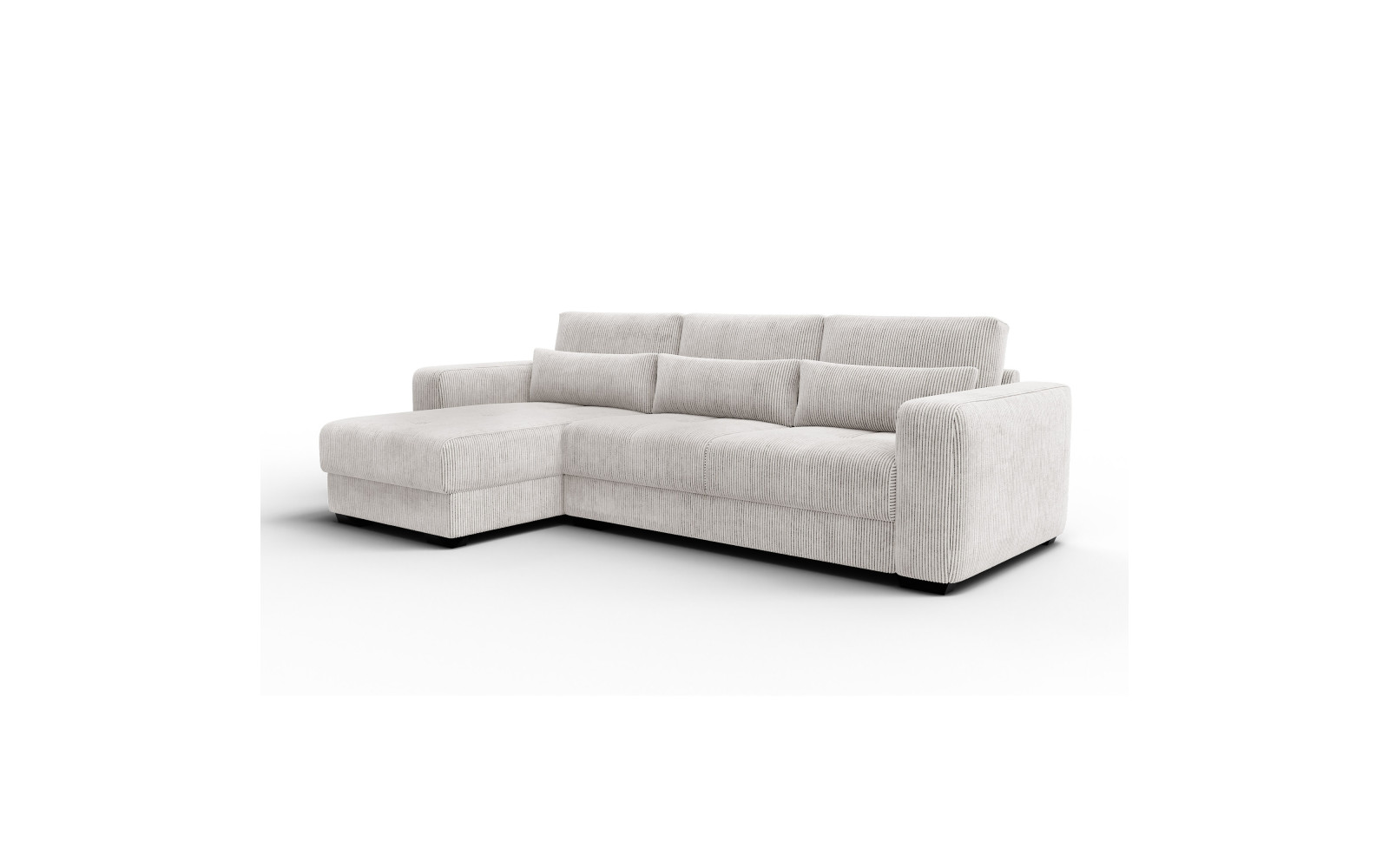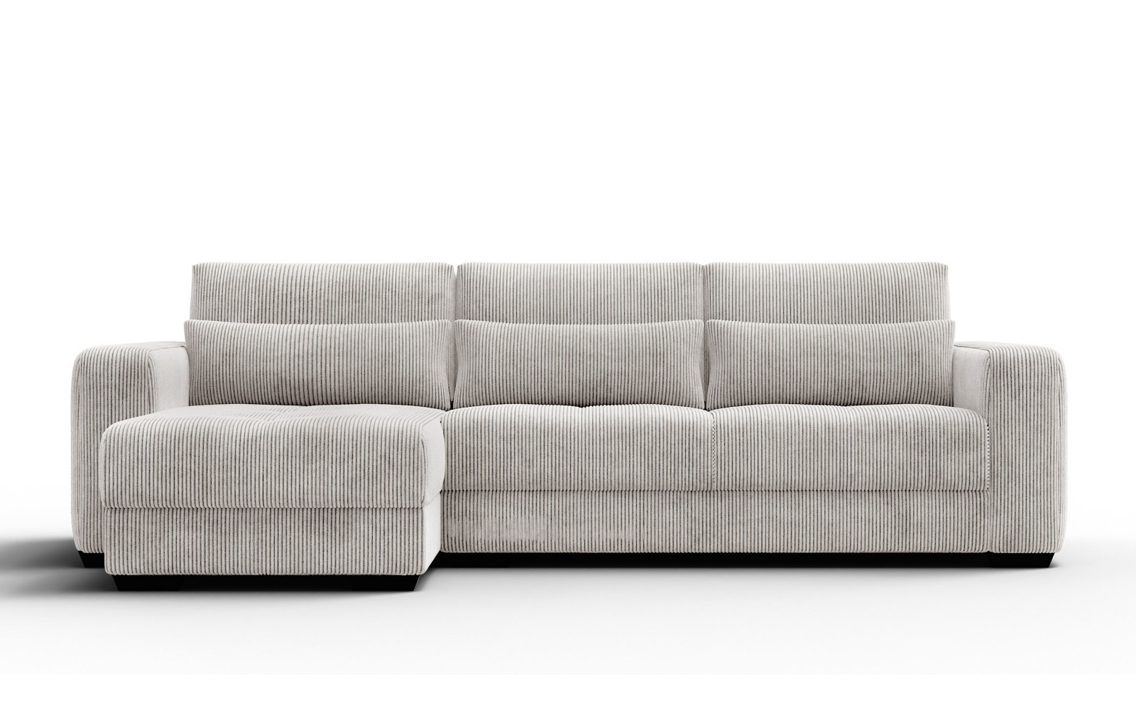 Ecksofa 4-Sitzer links OLI, perlweiß - Beschreibung:Erleben Sie mit dem Ecksofa 4-Sitzer links OLI, perlweiß einen Hauch von purem Luxus in Ihren eigenen vier Wänden. Dieses atemberaubende Möbelstück ist der Inbegriff von Helligkeit und Raffinesse. Der Farbton Perlweiß strahlt eine unvergleichliche Eleganz aus und lässt jeden Raum optisch größer und offener wirken. Es ist ein Sofa für Ästheten, die Wert auf ein exquisites Ambiente legen und dabei keine Kompromisse beim Komfort eingehen möchten. Das Design ist modern, schnörkellos und doch voller Wärme. Der Bezug aus feinem Cordstoff mit seinen charakteristischen Streifen ist ein haptisches Erlebnis der Sonderklasse. Außergewöhnlich weich und samtig im Griff, lädt er dazu ein, mit der Hand darüber zu streichen und die Struktur zu fühlen. Das Licht spielt sanft auf den Erhebungen des Stoffes, was dem perlweißen Ton eine faszinierende Lebendigkeit verleiht. Es ist ein Genuss für die Sinne, sich auf diesem Sofa niederzulassen. Trotz der hellen Farbe ist das Material so gewählt, dass es den Anforderungen des täglichen Lebens standhält, ohne seine luxuriöse Ausstrahlung zu verlieren. Die großzügige Sitzfläche auf der linken Seite bietet viel Platz zum Ausstrecken und Relaxen. Hier finden Sie Ruhe und Entspannung auf höchstem Niveau, eingebettet in weiche Formen und erstklassige Materialien. Warum das Ecksofa 4-Sitzer links OLI, perlweiß Ihre Einrichtung veredeltDas Ecksofa 4-Sitzer links OLI, perlweiß fungiert wie ein strahlender Mittelpunkt in Ihrem Wohnzimmer. Es zieht die Blicke auf sich, ohne aufdringlich zu wirken. Die Farbe Perlweiß lässt sich hervorragend mit dunklen Akzenten, metallischen Accessoires oder naturbelassenem Holz kombinieren, wodurch spannende Kontraste entstehen. Es ist die perfekte Bühne für Ihren individuellen Stil. Die abgerundeten Linien und die massiven Armlehnen unterstreichen den zeitgenössischen Charakter des Möbels. Es wirkt wie eine moderne Skulptur, die jedoch voll und ganz auf Bequemlichkeit ausgerichtet ist. Die hochwertige Verarbeitung sorgt dafür, dass die Nähte und Kanten auch bei intensiver Nutzung perfekt sitzen und das elegante Gesamtbild wahren. Mit diesem Sofa holen Sie sich ein Stück Designgeschichte nach Hause, das Modernität mit klassischer Gemütlichkeit verbindet. Es ist ein Statement für guten Geschmack und den Wunsch nach einem harmonischen, hellen Zuhause, in dem man sich sofort wohlfühlt. Ergonomie und Gemütlichkeit im Ecksofa 4-Sitzer links OLI, perlweißUnter dem traumhaft schönen Bezug des Ecksofa 4-Sitzer links OLI, perlweiß verbirgt sich ein Kern aus hochflexiblem Schaumstoff. Dieser bietet eine mittelfeste Sitzqualität, die als ideal für langes Sitzen und Liegen empfunden wird. Sie sinken sanft ein, werden aber gleichzeitig optimal gestützt, was pure Entspannung für den Rücken bedeutet. Die samtige Oberfläche des Cords sorgt zudem für ein warmes und angenehmes Hautgefühl. Im Gegensatz zu glatten Stoffen bietet die Struktur eine gewisse Griffigkeit, die das Sitzen noch gemütlicher macht. Es ist der perfekte Ort, um nach einem langen Arbeitstag die Seele baumeln zu lassen und neue Energie zu tanken. Dieses Sofa beweist, dass sich helles Design und absolute Alltagstauglichkeit nicht ausschließen müssen. Es ist ein Ort der Zuflucht, der Exklusivität und Komfort auf eine Weise vereint, die Sie jeden Tag aufs Neue begeistern wird. |