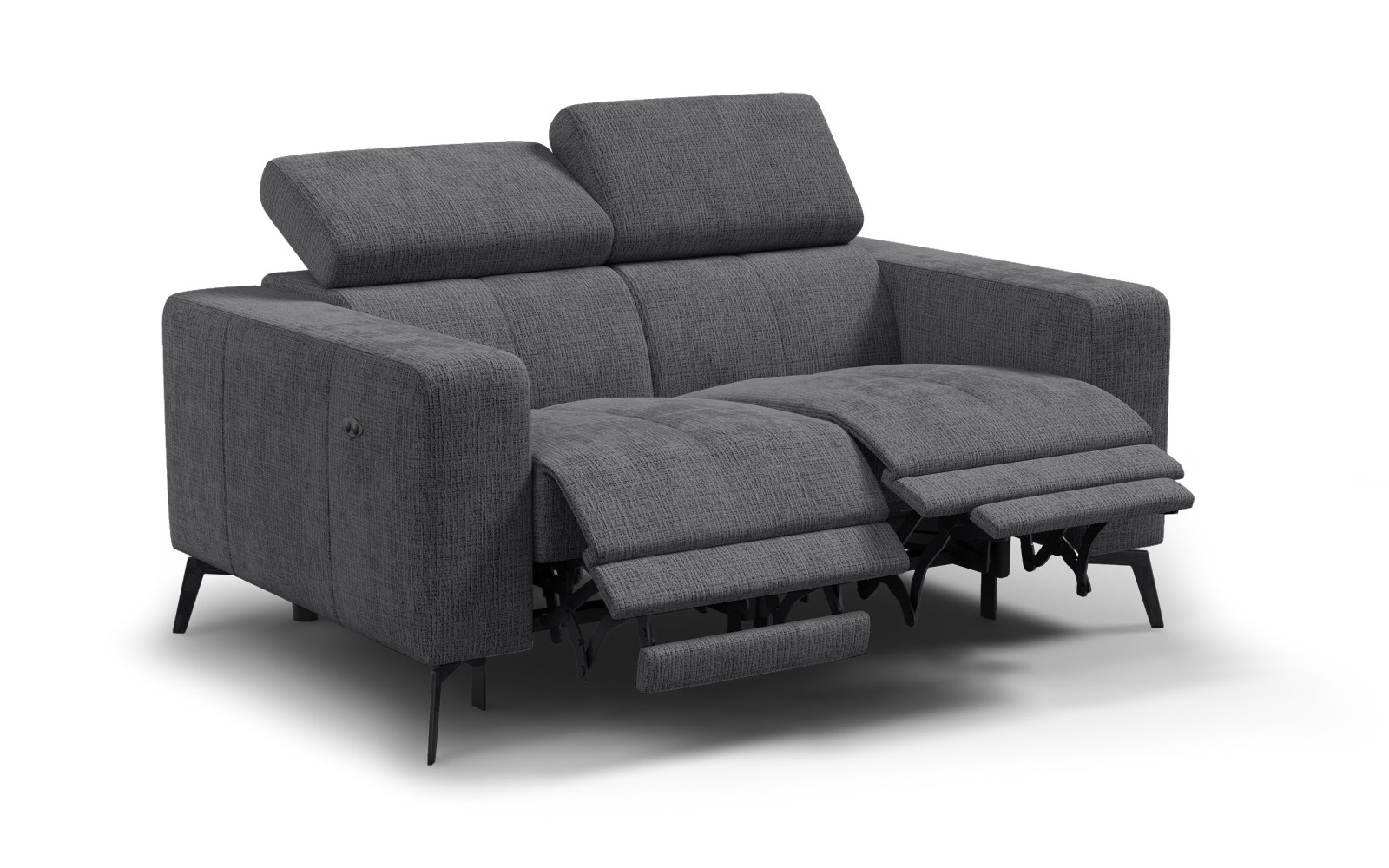 Sofa 2-Sitzer MORELLO in dunkelgrauem Chenille-Stoff, weich im Griff und strapazierfähig (45.000 Martindale), für langlebigen Komfort und ein angenehmes Sitzgefühl.