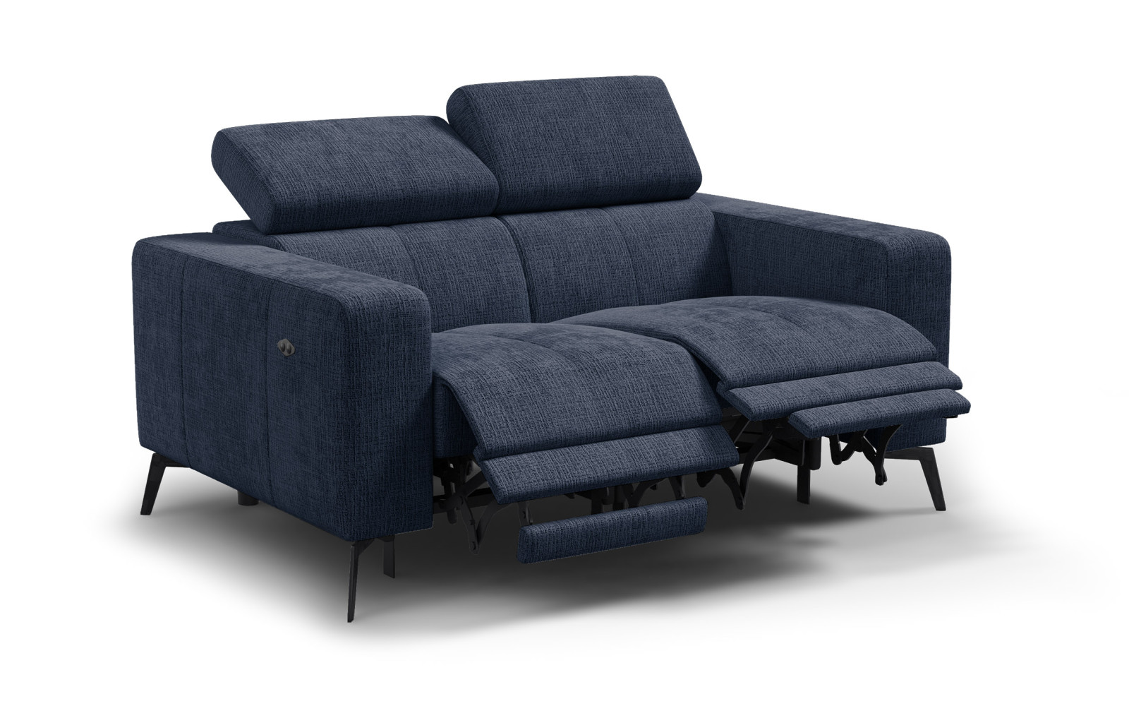 Sofa 2-Sitzer MORELLO in marineblauem Chenille-Stoff, weich im Griff und strapazierfähig (45.000 Martindale), für langlebigen Komfort und ein angenehmes Sitzgefühl.